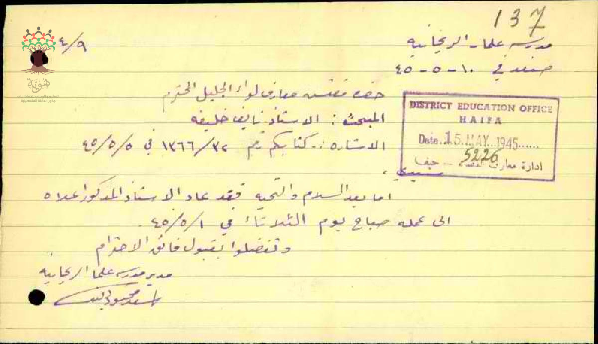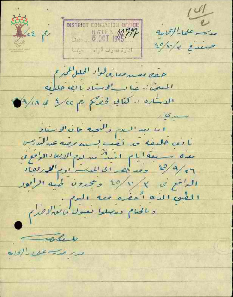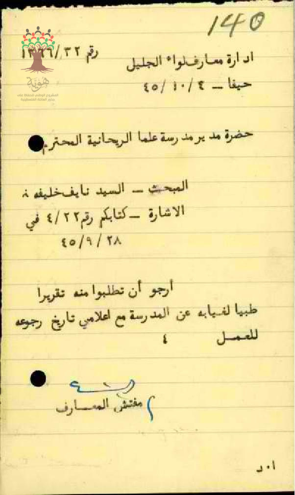 غياب المعلم نايف خليفة - صفد من مدرسة علما الريحانية