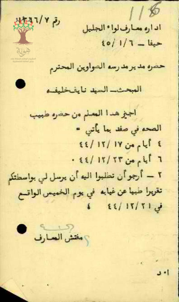 غياب المعلم نايف خليفة - صفد من مدرسة علما الريحانية