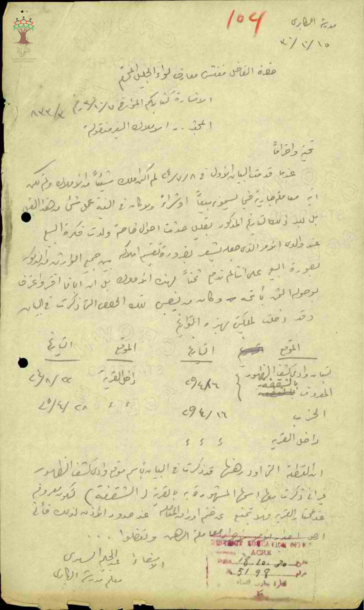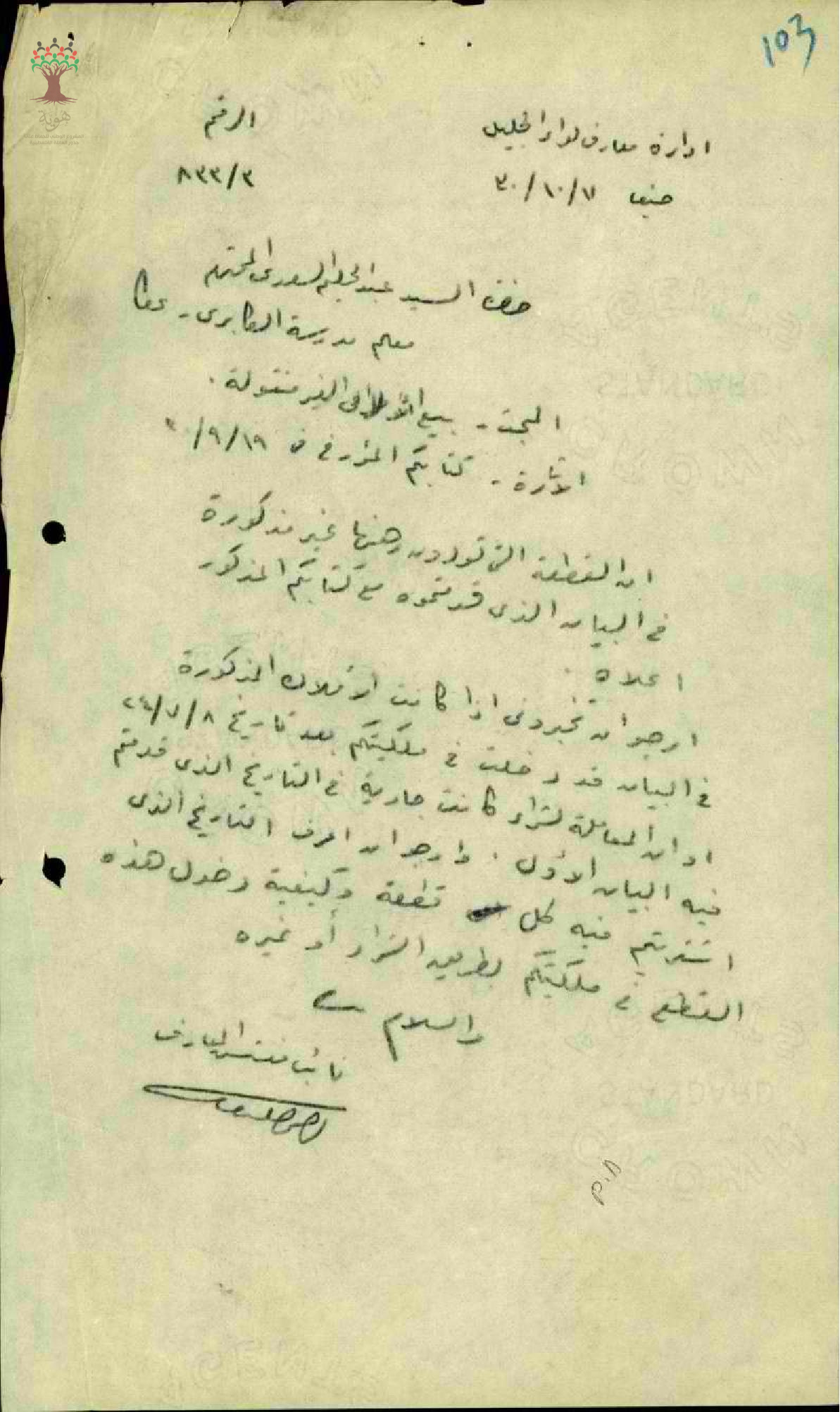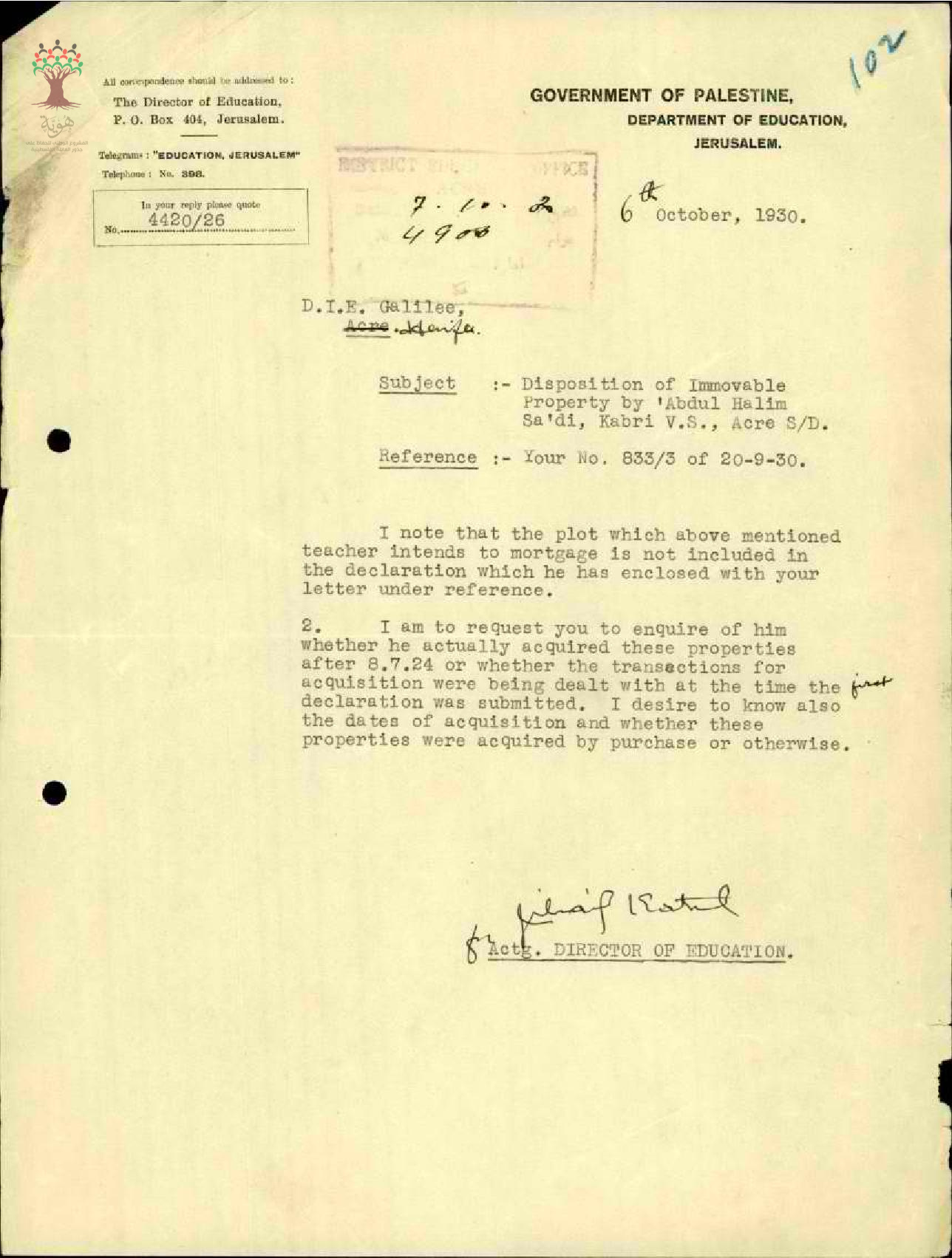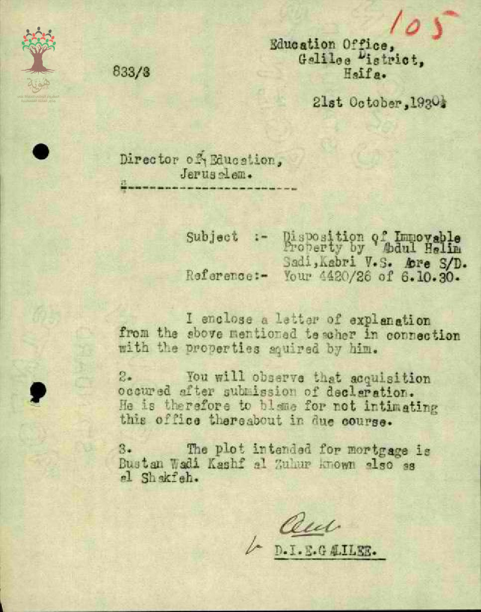 مجموعة رسائل بخصوص رهن المعلم عبد الحليم السعدي بجزء غير معرّف به من أمواله الغير منقولة