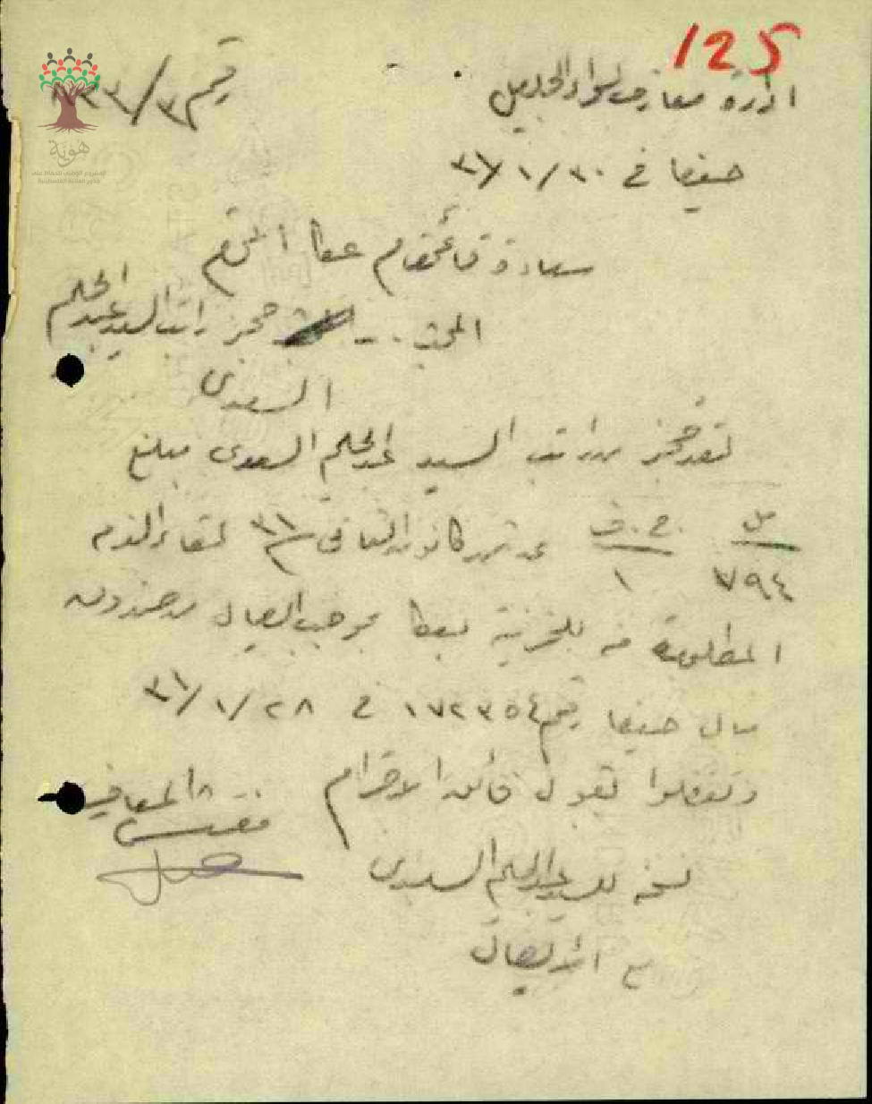 رسالة من مفتش المعارف الى قائمقام عكا بخصوص الحجز على ربع راتب المعلم عبد الحليم السعدي