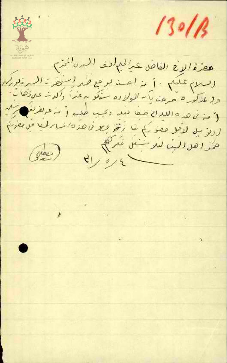 رسالة من المعلم عبد الحليم السعدي الى مفتش المعارف بخصوص تغيبه عن المدرسة بسبب ولادة زوجته مرفقة بالتقرير الطبي