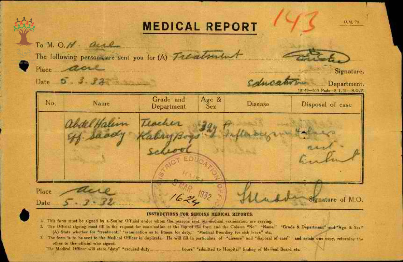 تقارير طبية عن غياب المعلم عبد الحليم السعدي مدرسة الكابري-الزيب
