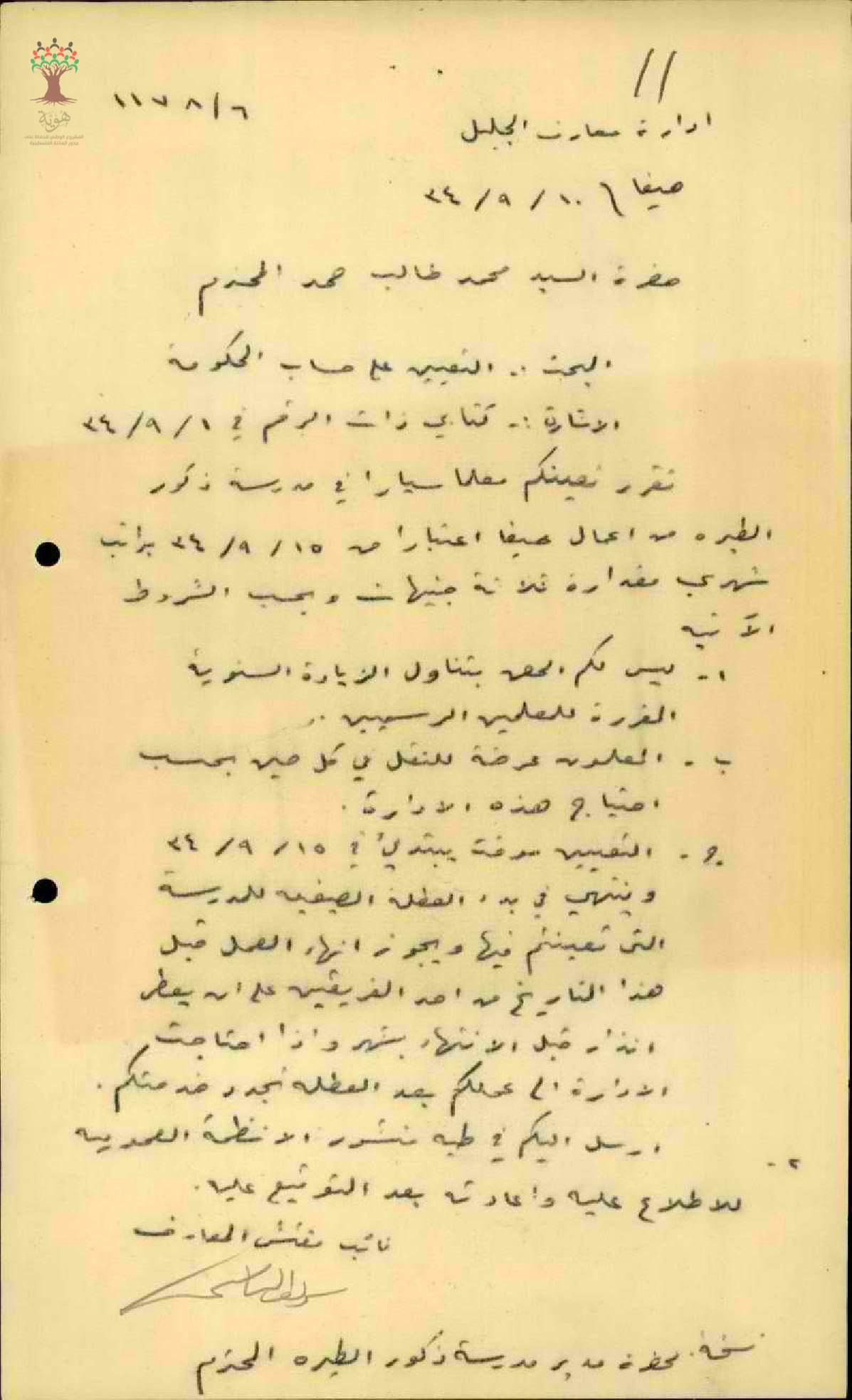 رسالة من مفتش المعارف الى المعلم محمد حمد بخصوص شروط تعيينه على حساب الحكومة