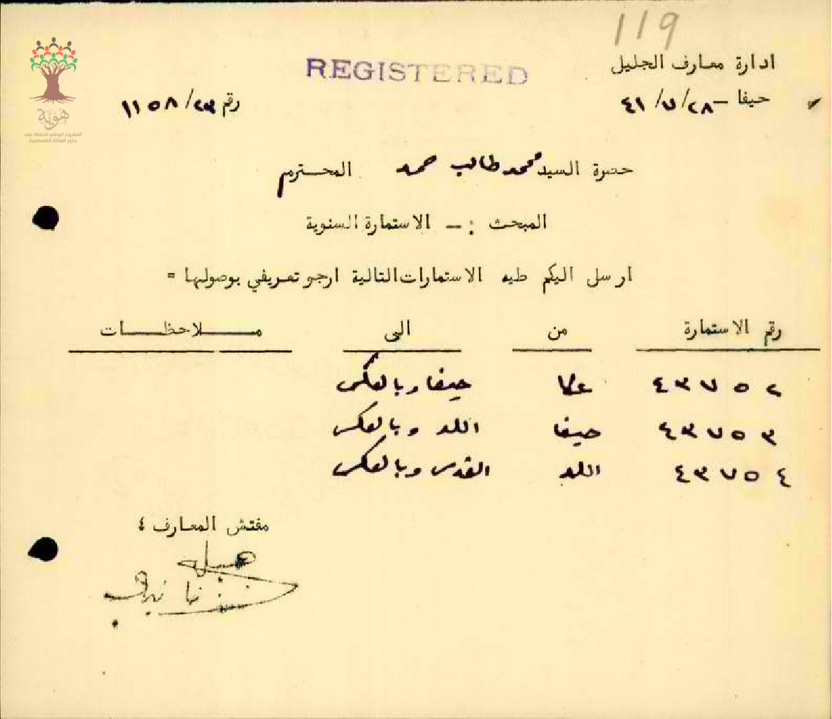 رسالة من مفتش المعارف الى المعلم محمد حمد بخصوص استلام استمارات السفر