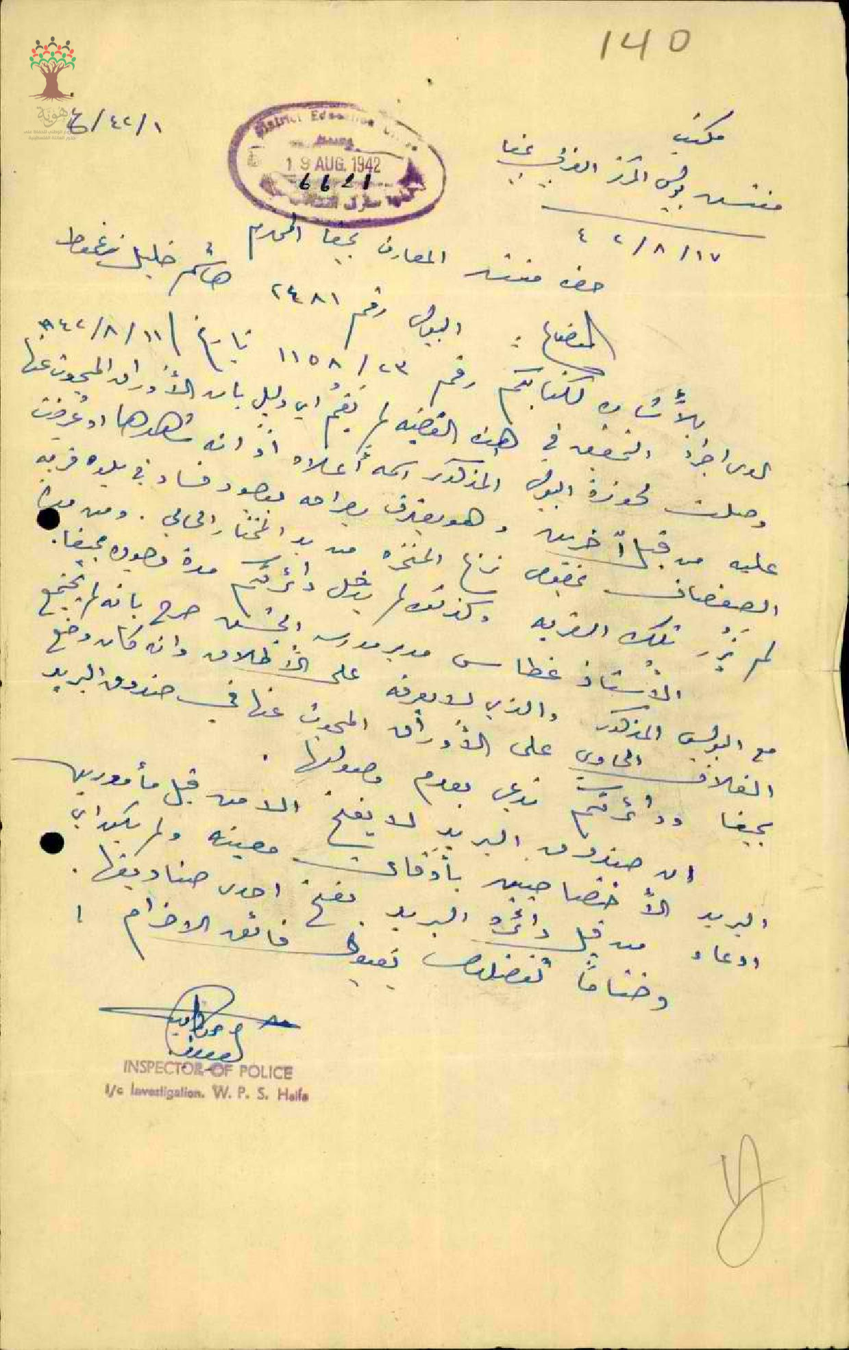 رسالة من ضابط البوليس الى مفتش المعارف بخصوص الشكوى المقدمة ضد المعلم محمد حمد