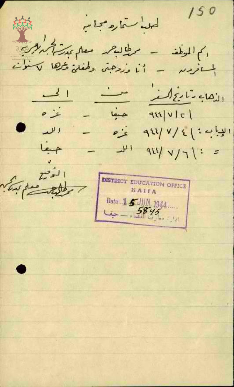 طلب استمارة سفر مقدمة من المعلم محمد حمد/الصفصاف