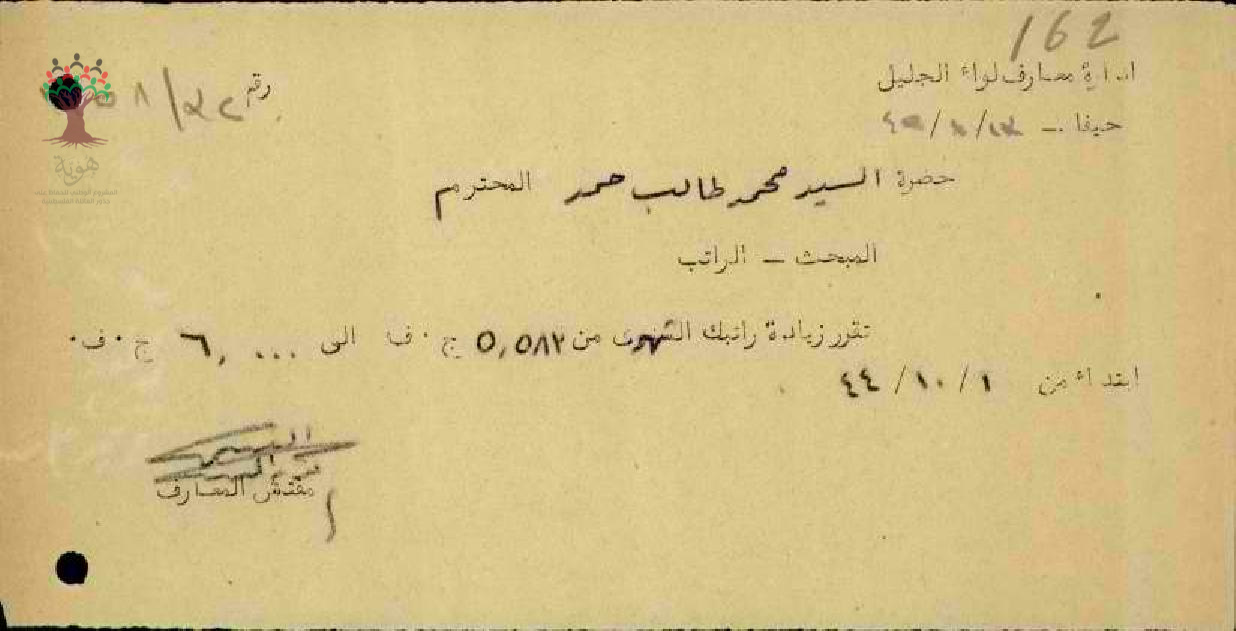 رسالة من مفتش المعارف الى المعلم محمد حمد بخصوص زيادة راتبه السنوية
