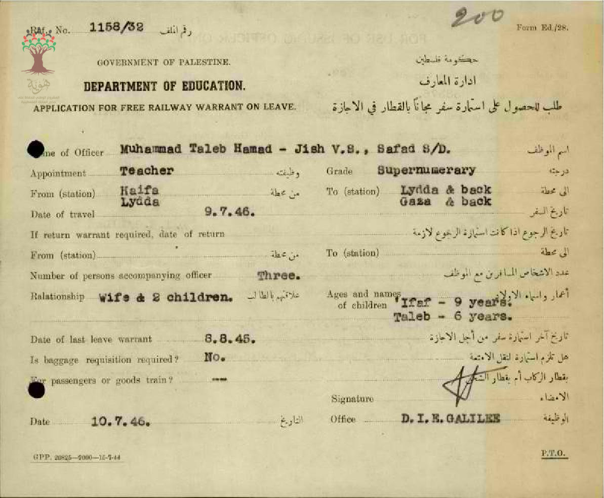 طلب استمارة سفر مقدمة من المعلم محمد حمد/الصفصاف