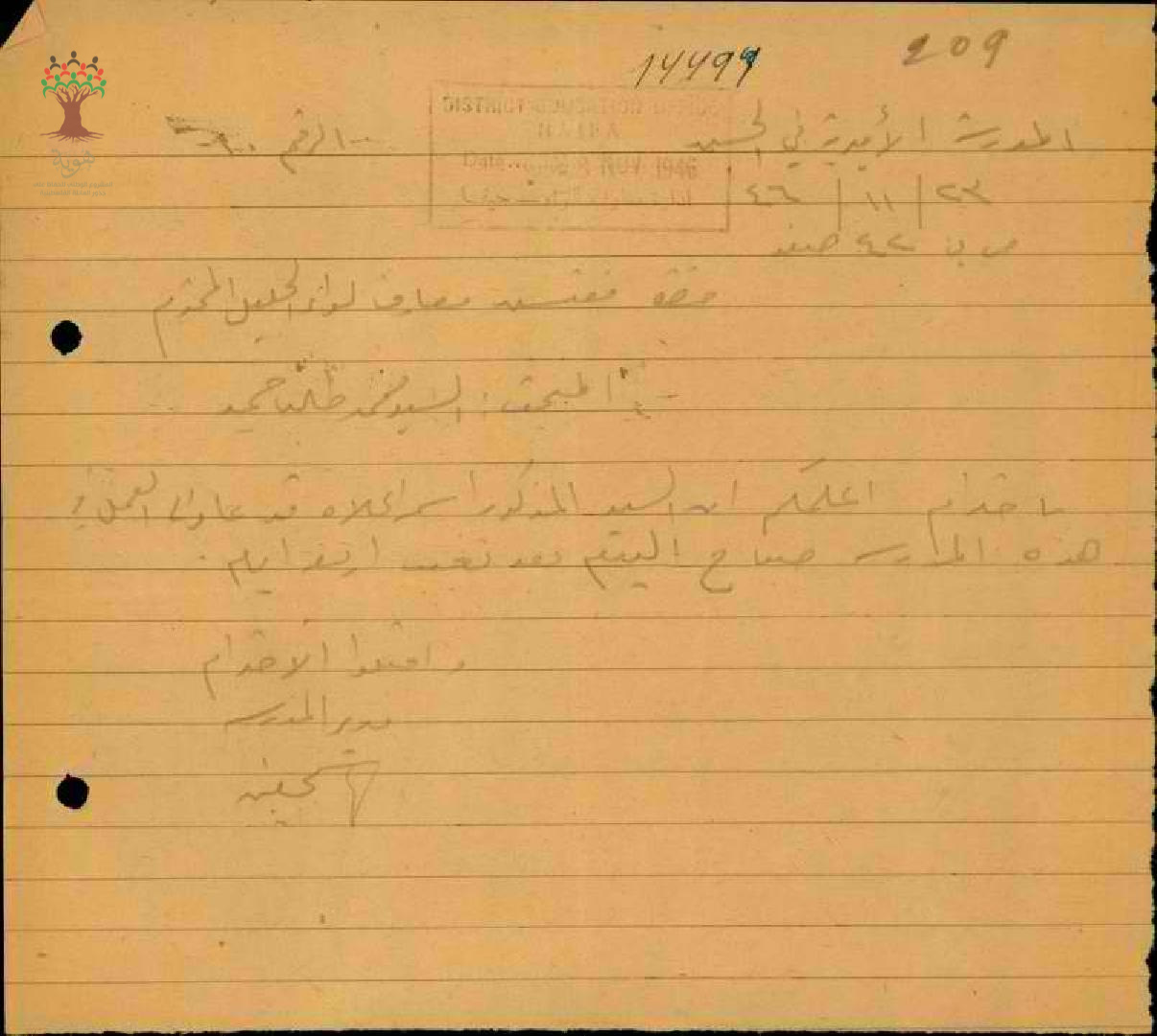 رسالة من مدير مدرسة الجش الى مفتش المعارف بخصوص عودة المعلم محمد حمد الى العمل