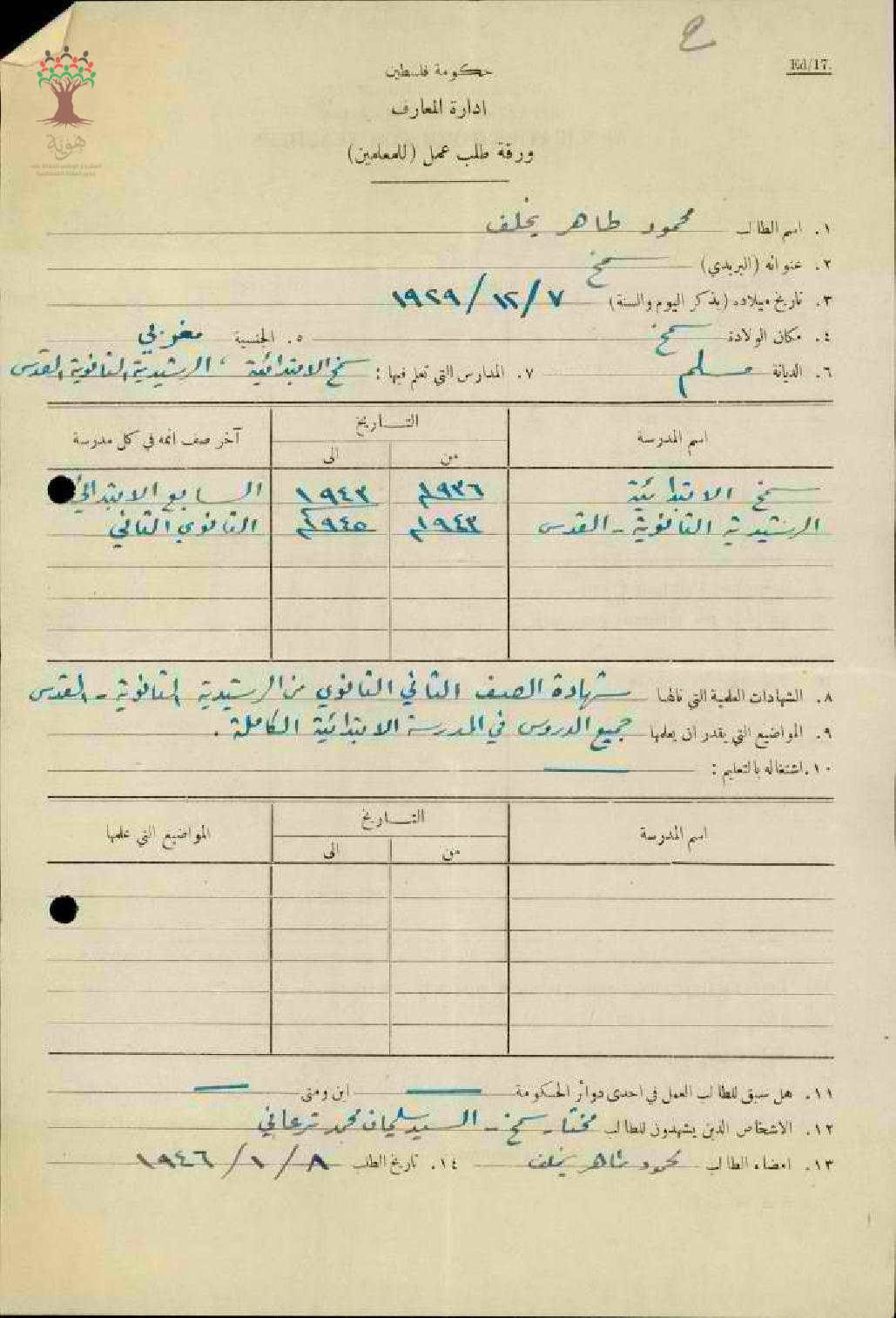 ورقة طلب عمل للمعلم محمود يخلف/سمخ