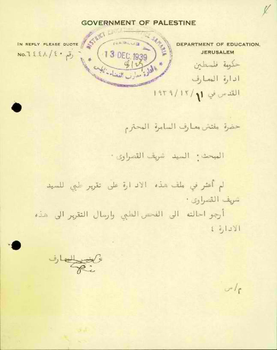 رسائل بخصوص التقرير الطبي لتعيين المعلم شريف قصراوي