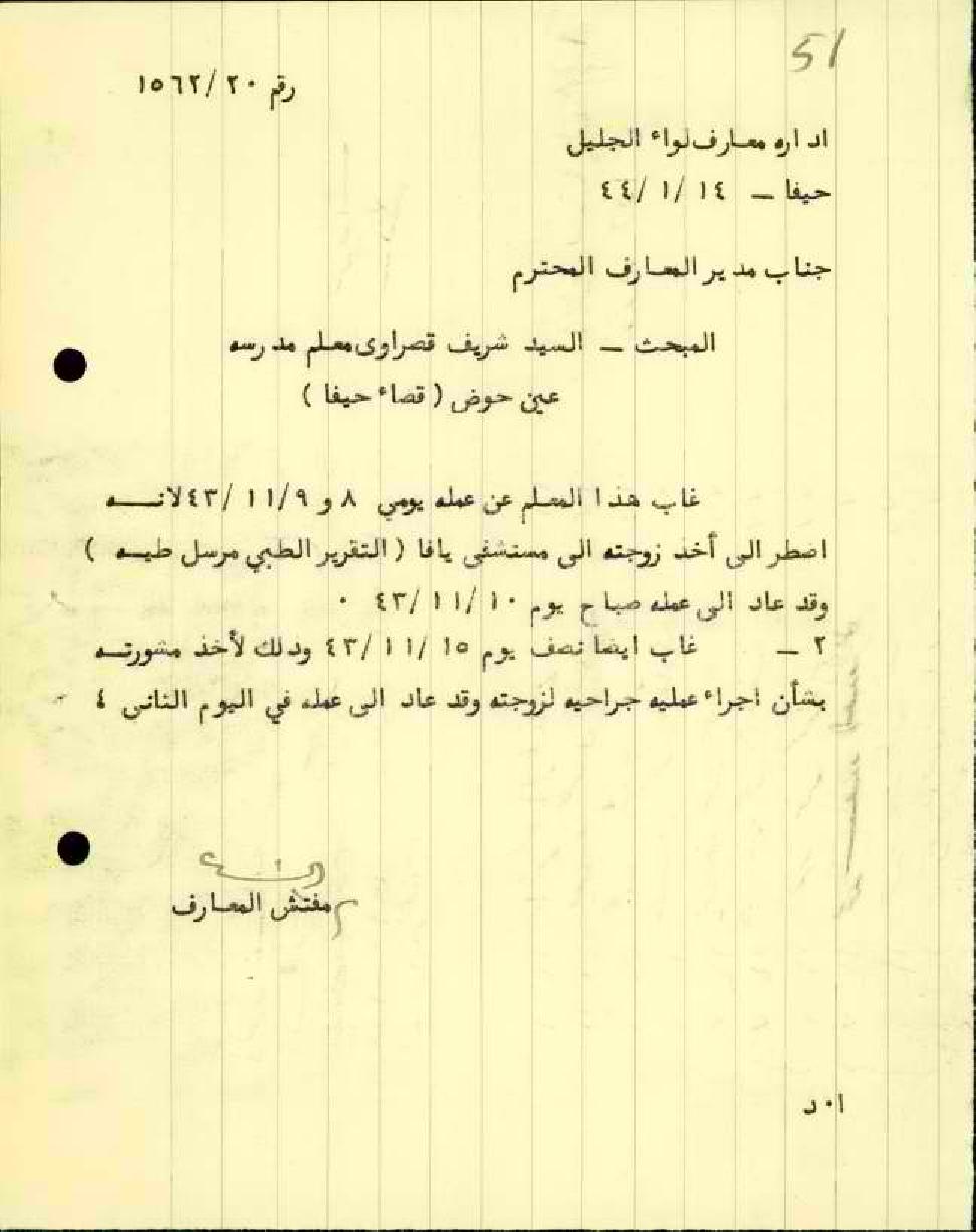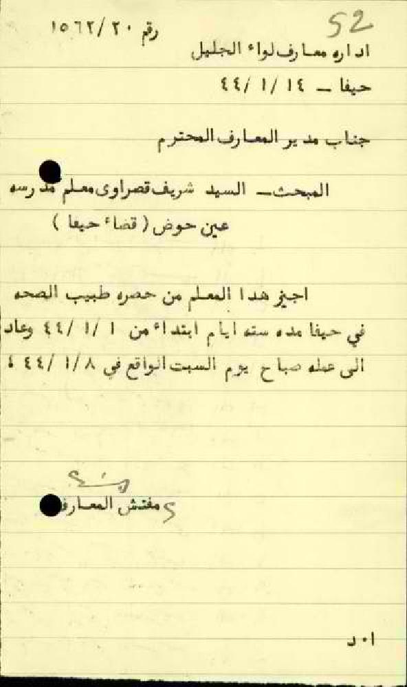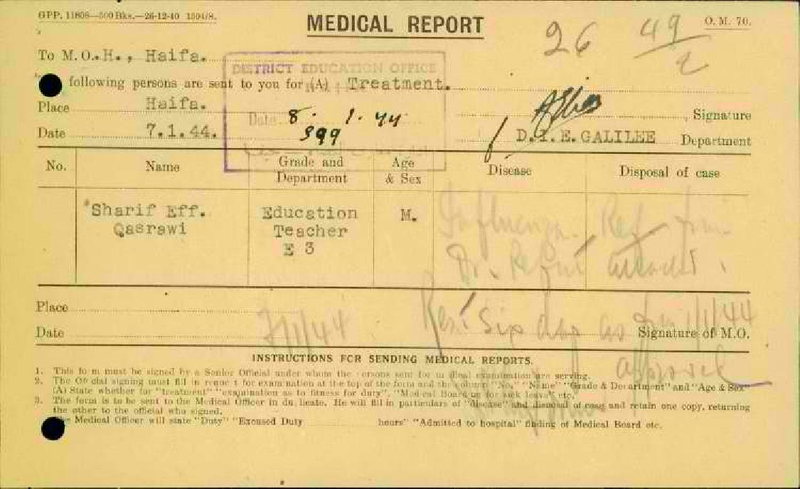مجموعة رسائل وتقارير طبية بخصوص تغيب المعلم شريف قصراوي عن العمل بسبب المرض