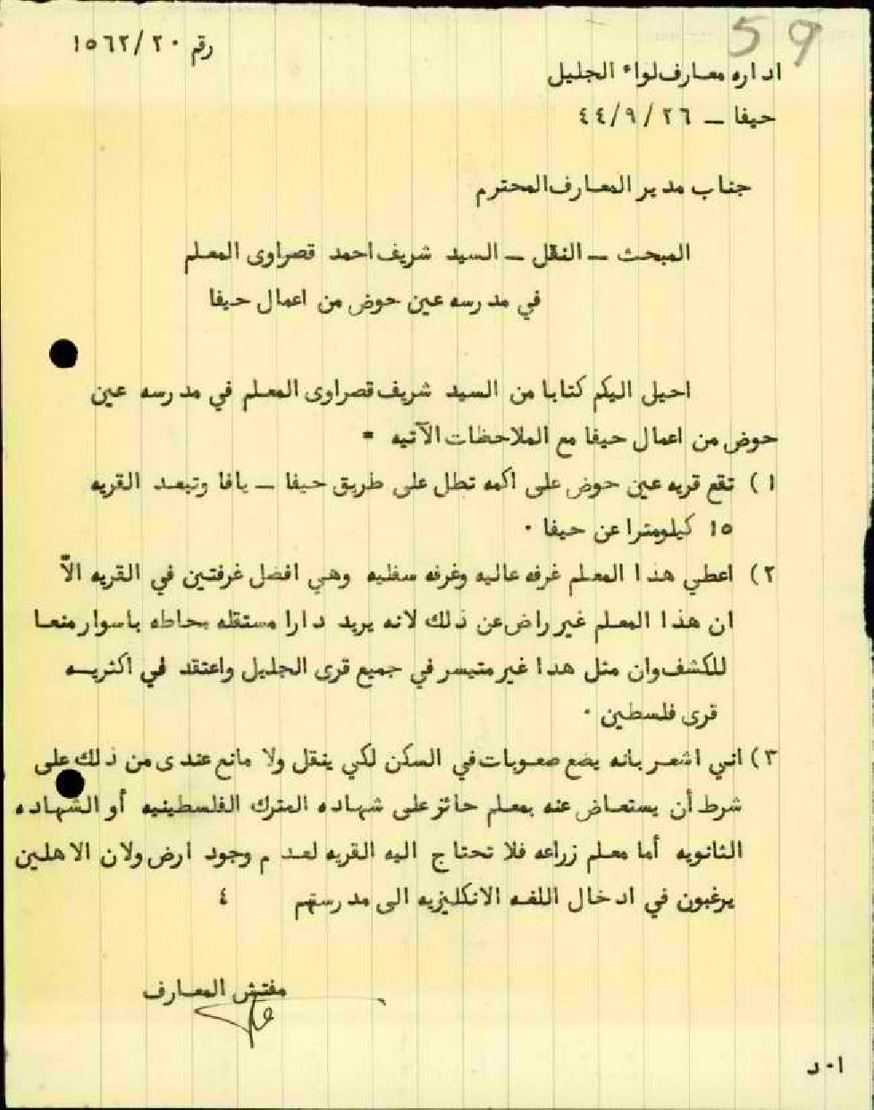 مجموعة رسائل بخصوص رغبة المعلم شريف قصراوي في نقله من مدرسة عين حوض