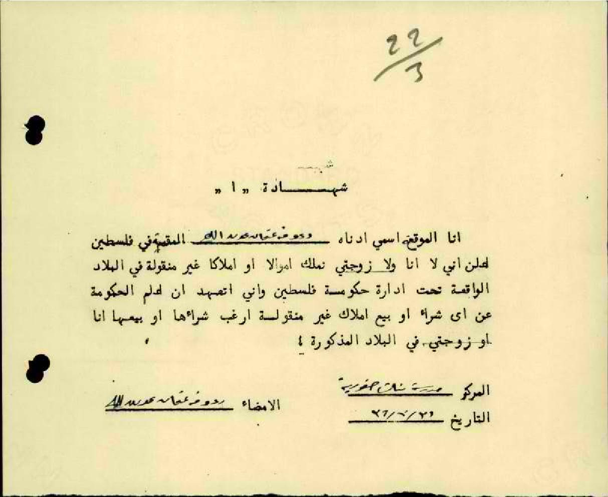 شهادة نفي ملكية-رؤوفة عون الله/الناصرة