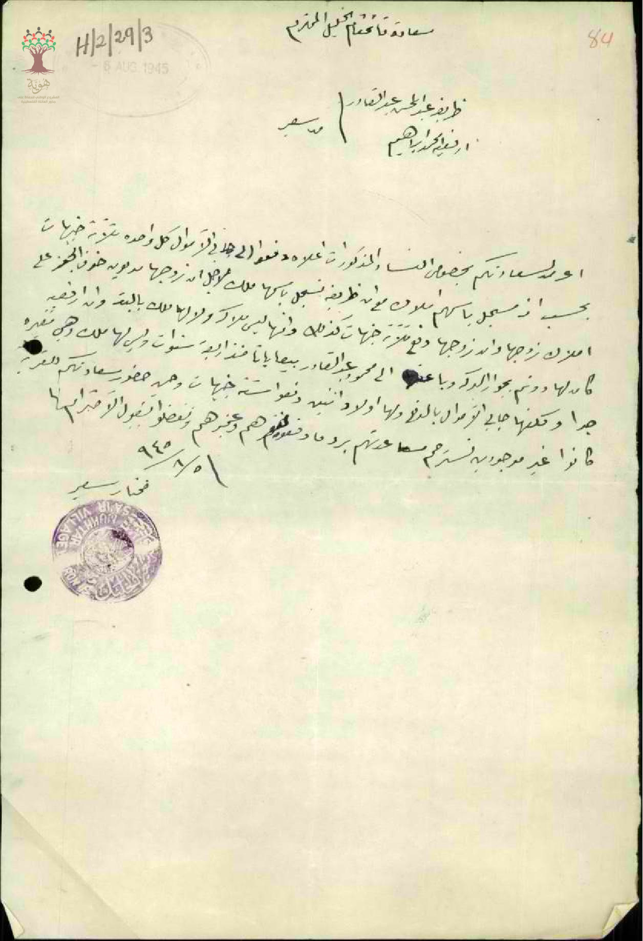 رسالة من مختار قرية سعير إلى قائمقام قضاء الخليل