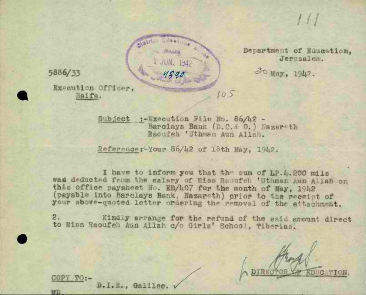 رسائل بخصوص فك الحجز عن ثلث راتب المعلمة رؤوفة عون الله