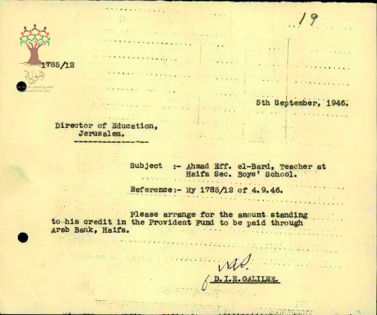 رسالة من مفتش المعارف الى مدير المعارف بخصوص تحويل راتب المعلم أحمد البرد