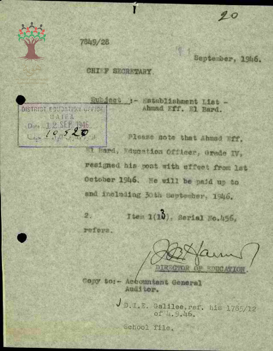 رسائل بخصوص الموافقة على استقالة المعلم أحمد البرد