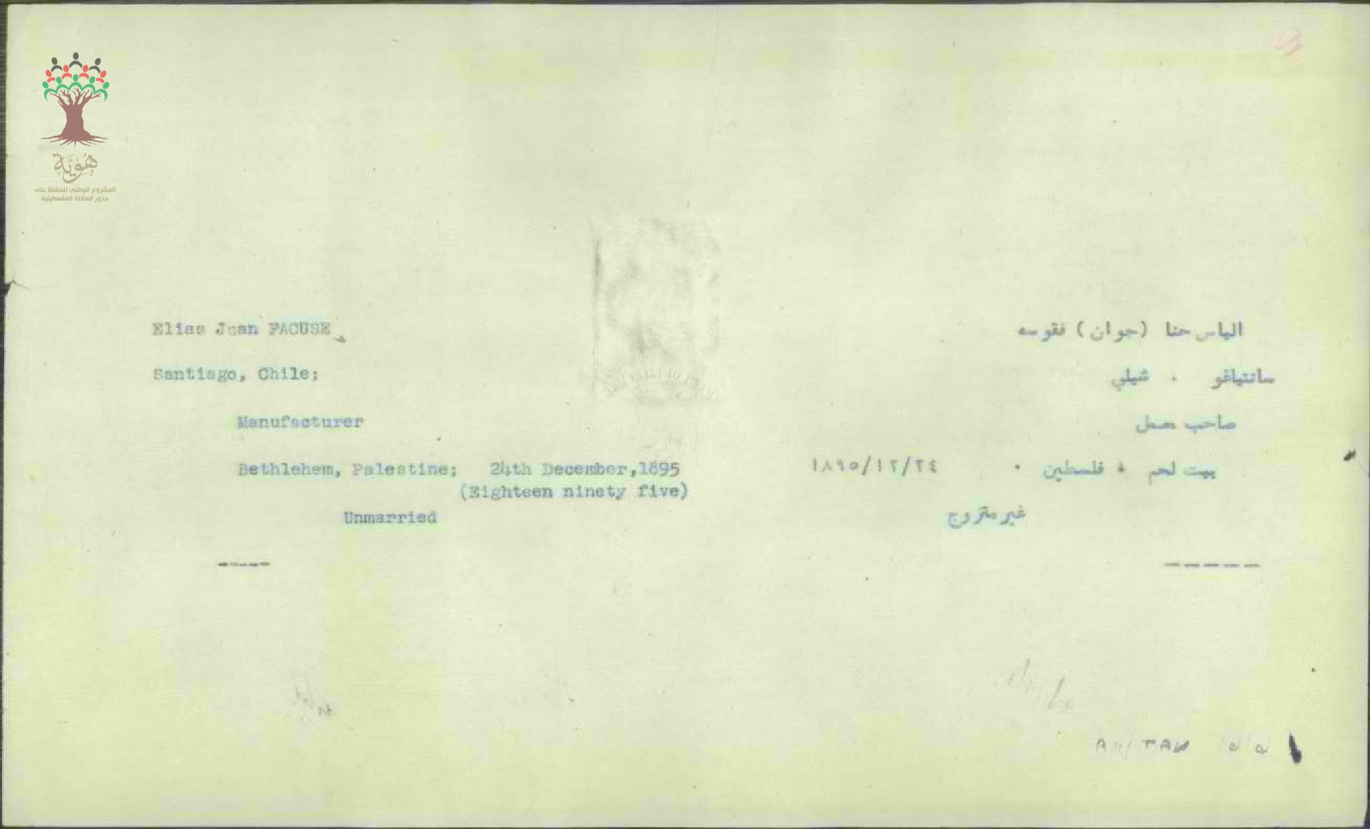 ورقة بيانات - إلياس حنا فقوسة المرفقة بطلب الجنسية
