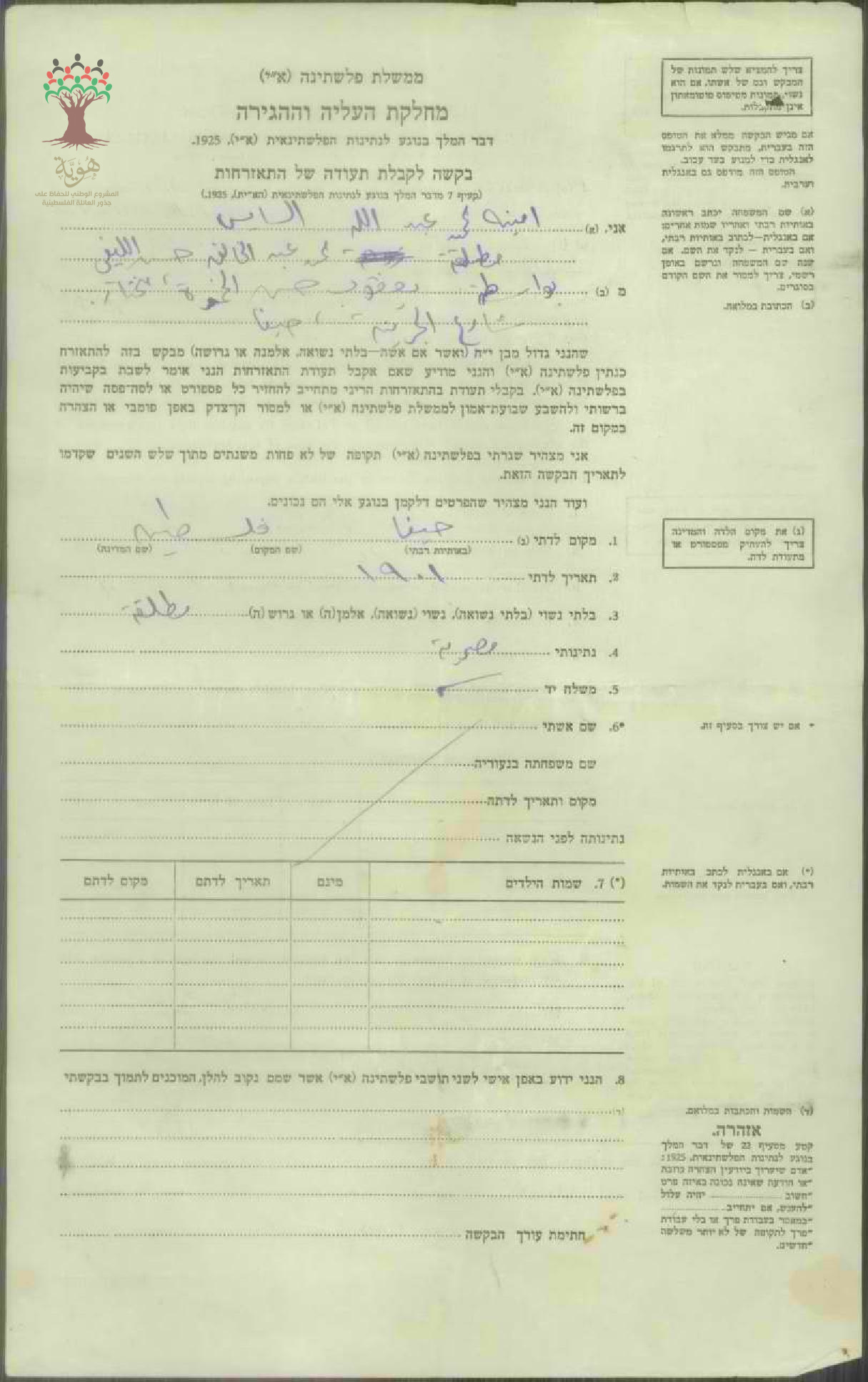 طلب الجنسية الفلسطينية - أمينة محمد عبد الله السايس - حيفا