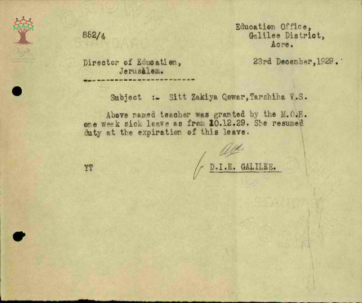 رسائل بخصوص تغيب المعلمة زكية قعوار وعودتهال الى العمل