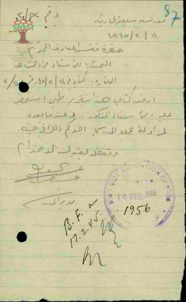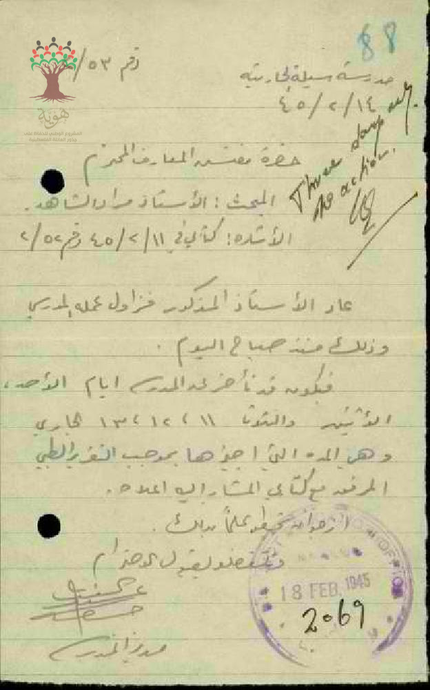 مجموعة رسائل بخصوص تغيب المعلم مراد الشاهد عن العمل مرفقة بالتقرير الطبي وعودته الى العمل