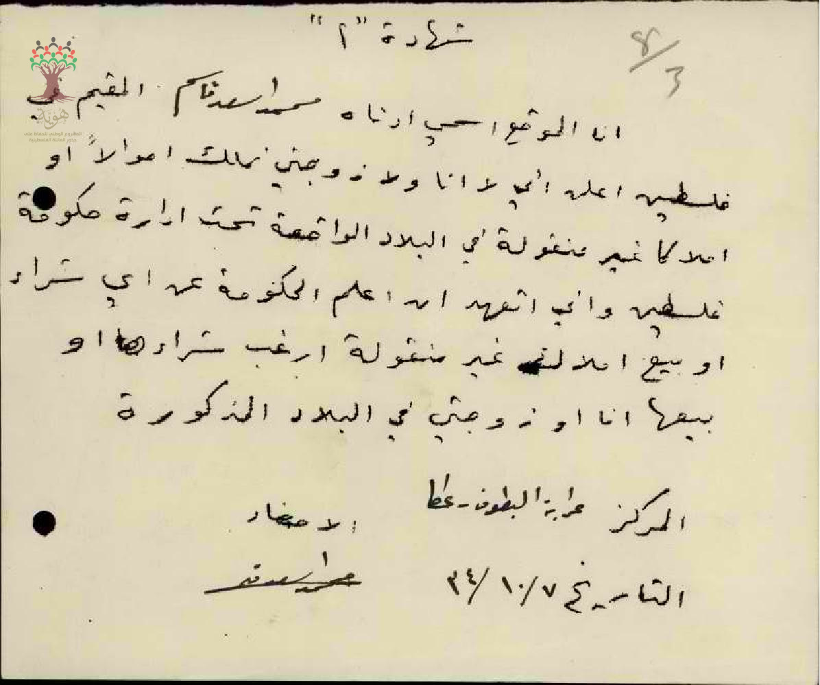 شهادة نفي ملكية-محمد أسعد قاسم/دبورية