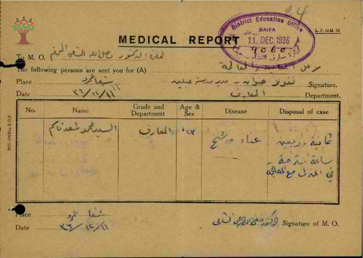تقرير طبي عن غياب المعلم محمد قاسم-مدرسة عبلين