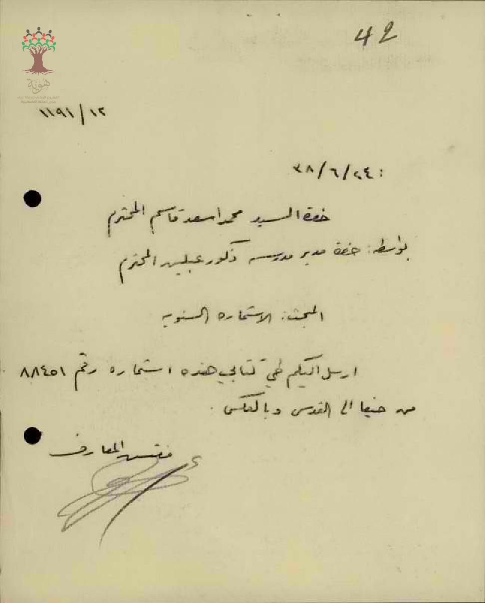 رسالة من مفتش المعارف الى المعلم محمد قاسم بخصوص استمارة سفره السنوية