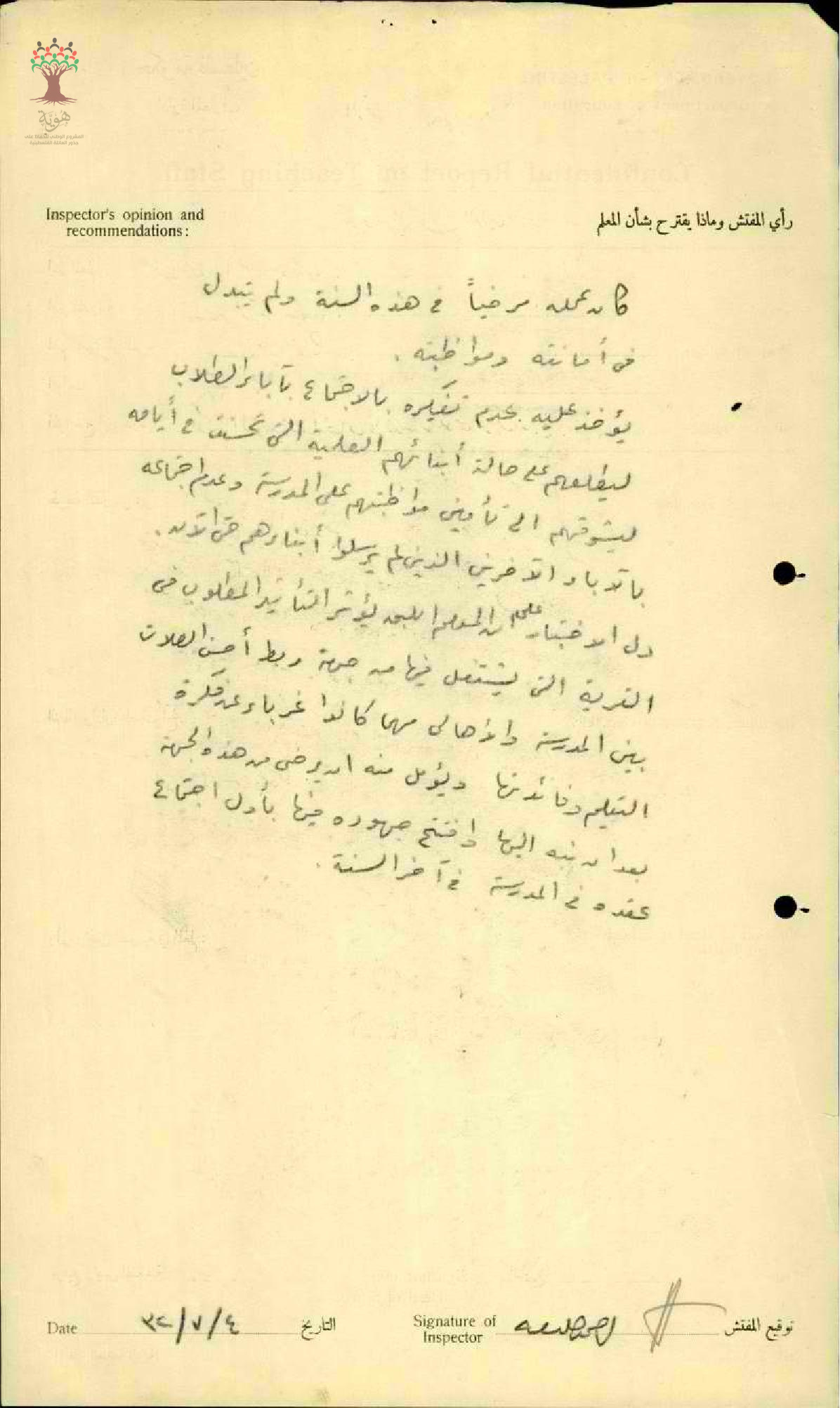 رأي مدير مدرسة عين ماهل بالمعلم محمد علي سخنيني - سخنين - مدرسة عين ماهل