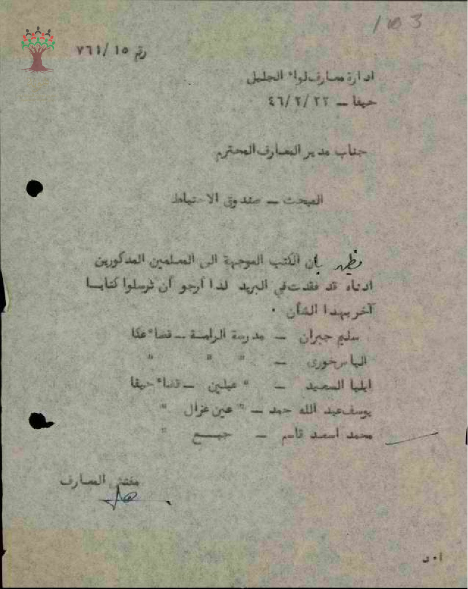 مجموعة رسائل بخصوص توقيع المعلم محمد قاسم على أوراق اشتراكه في صندوق الاحتياط