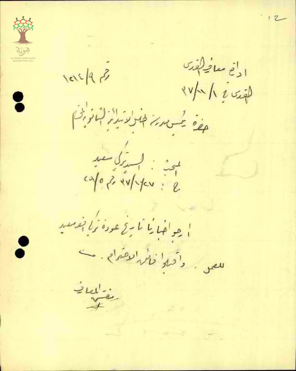 رسالة من مفتش المعارف الى مدير مدرسة الخليل يسأل عن تاريخ عودة المعلم تركي سعيد الى العمل