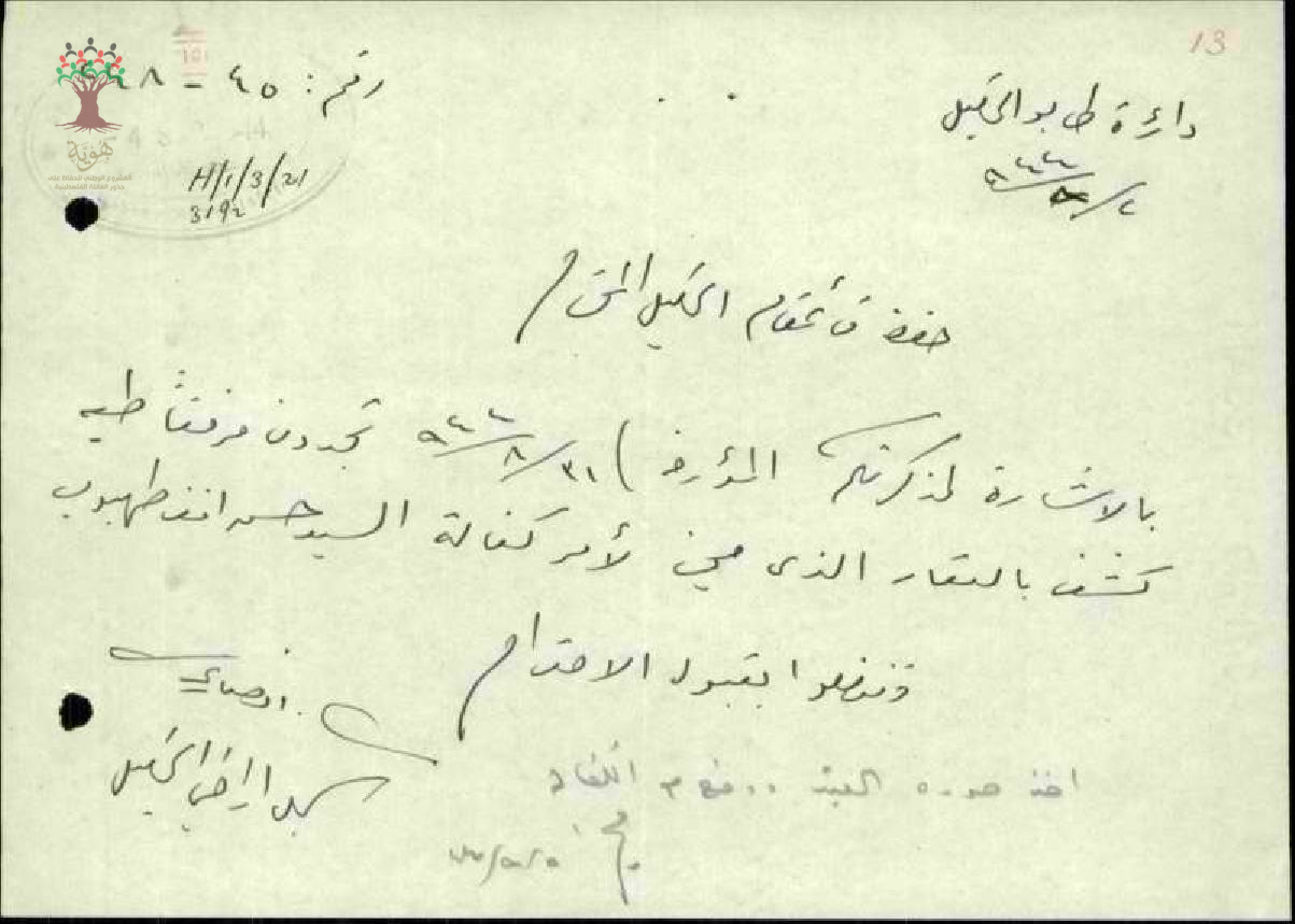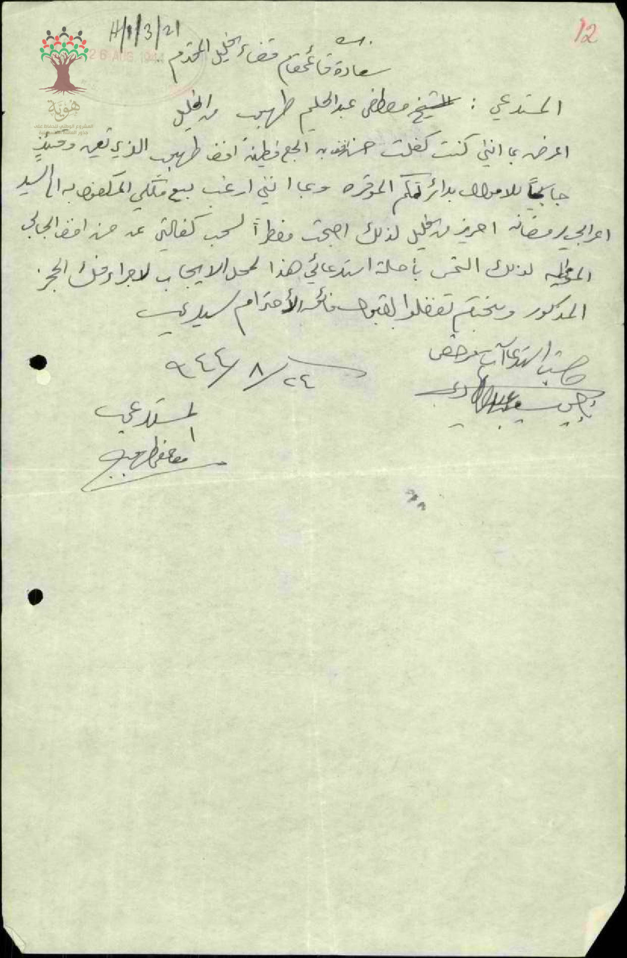 الشيخ مصطفى عبدالحليم طهبوب يطلب سحب كفالة حسن طهبوب بداعي بيع أملاكه للسيد اعرابي رمضان احريز من الخليل