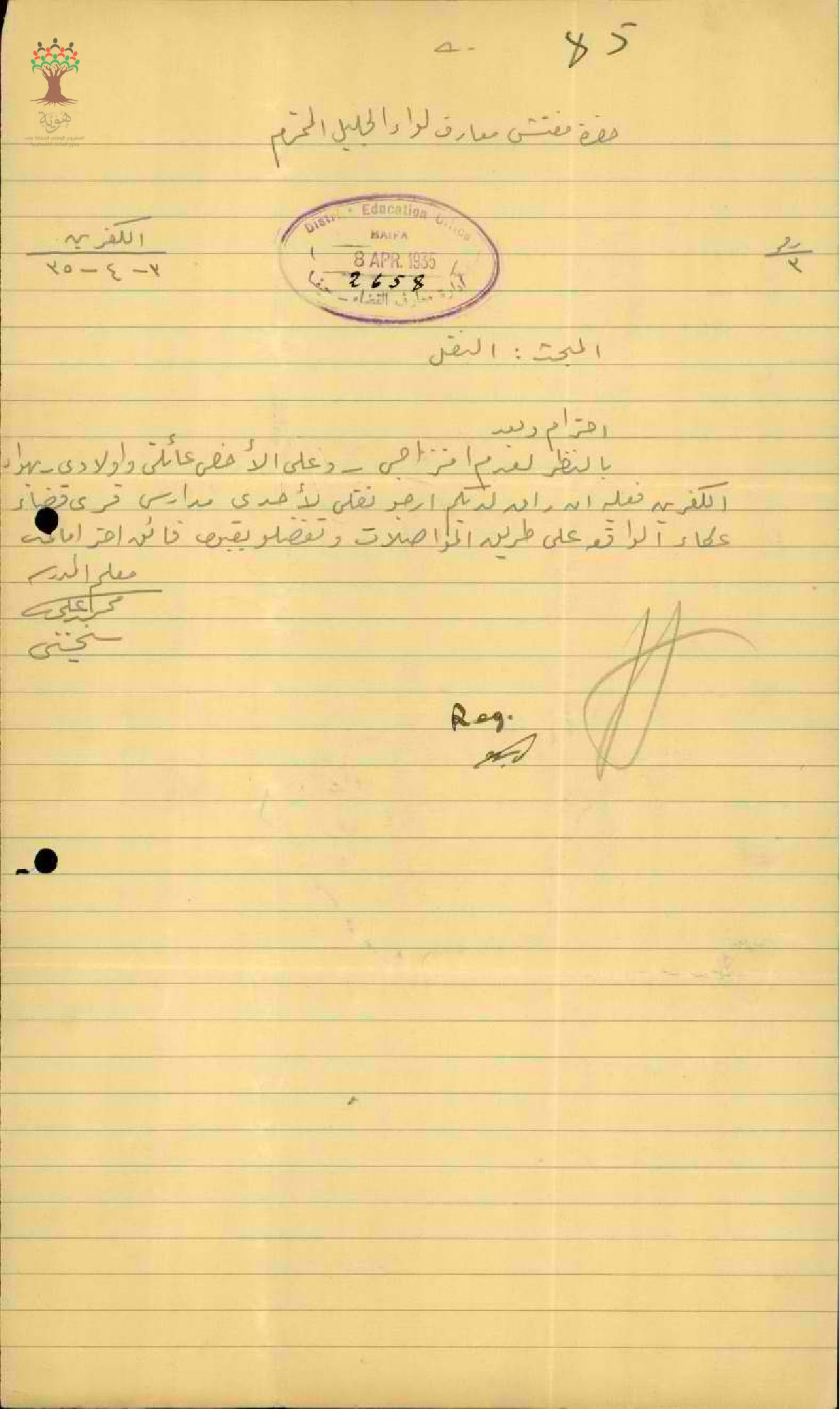 طلب نقل مقدم من المعلم محمد علي السخنيني - سخنين - مدرسة الكفرين