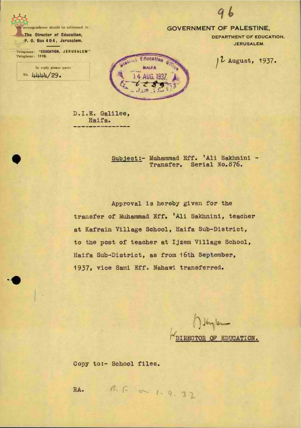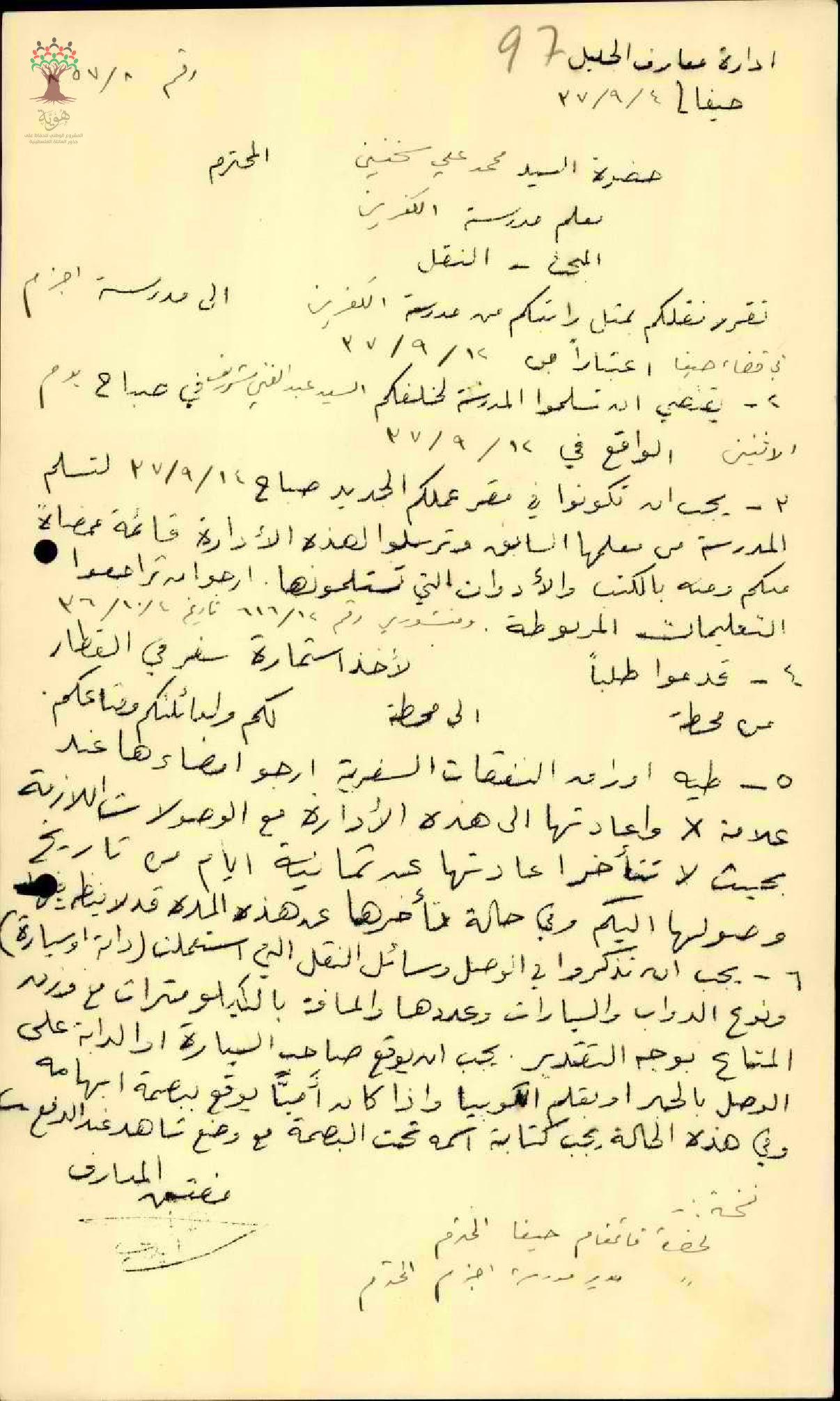 نقل المعلم محمد علي سخنيني - سخينين - من مدرسة الكفرين الى مدرسة اجزم
