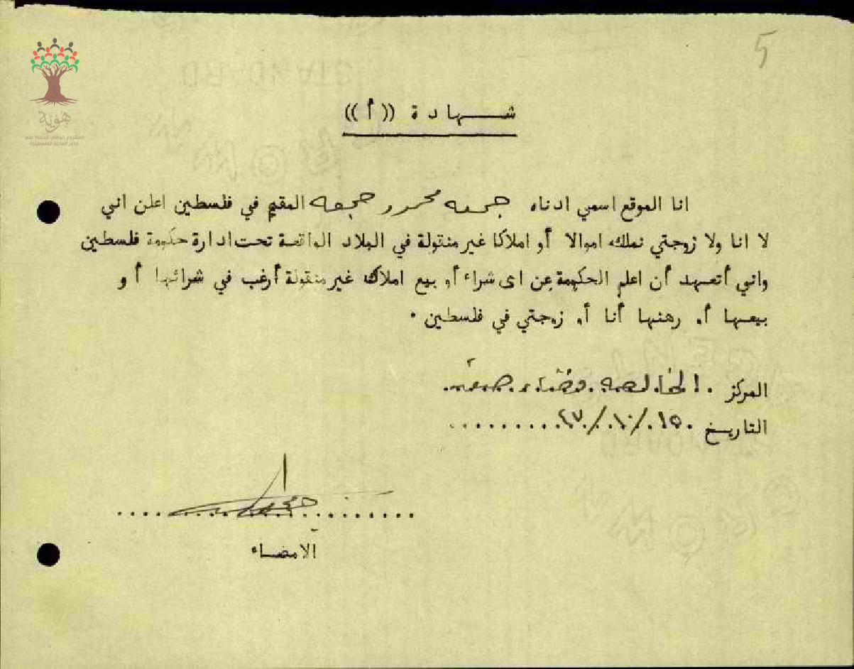 ورقة نفي ملكية تخص المعلم جمعة جمعة