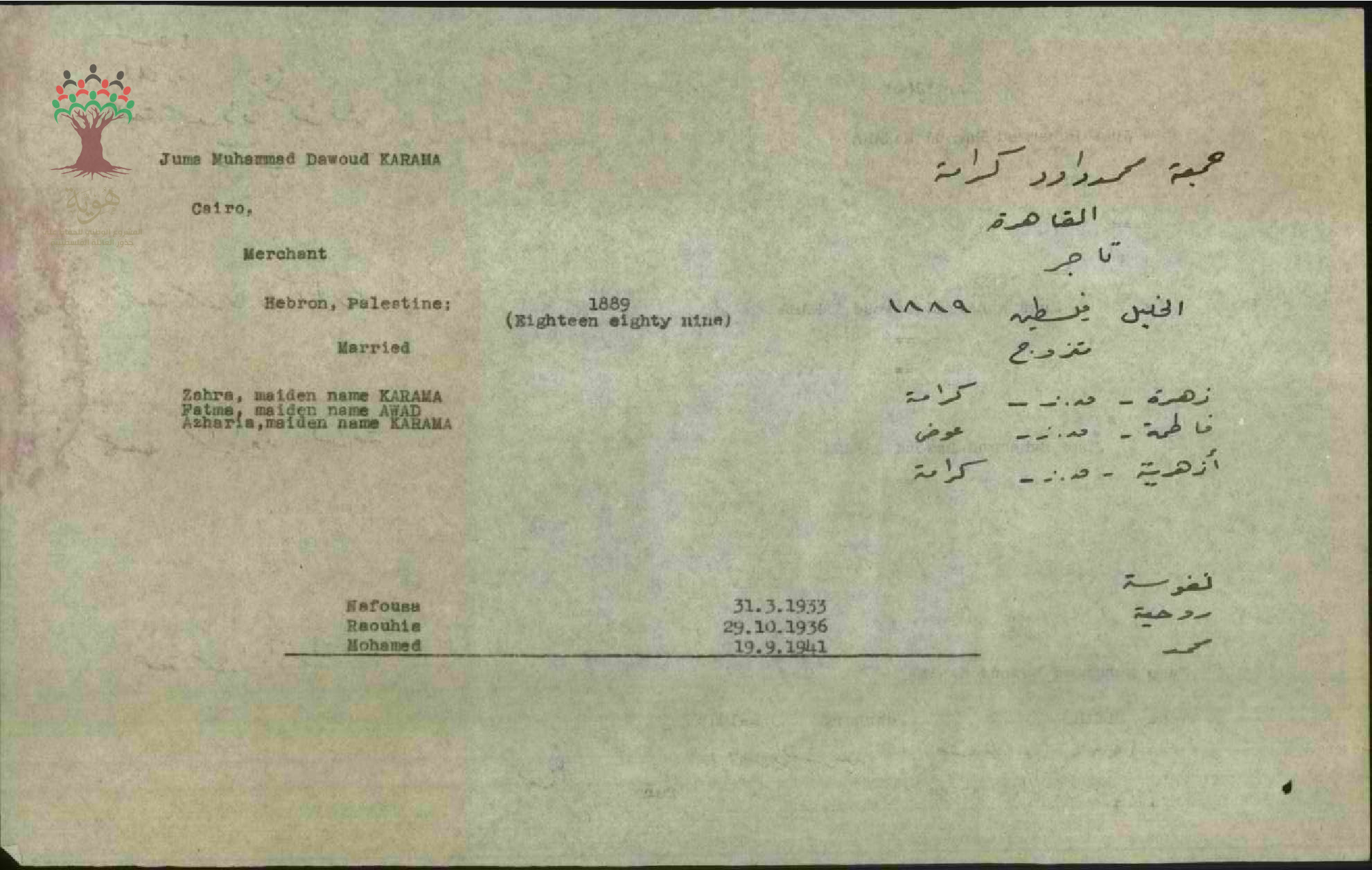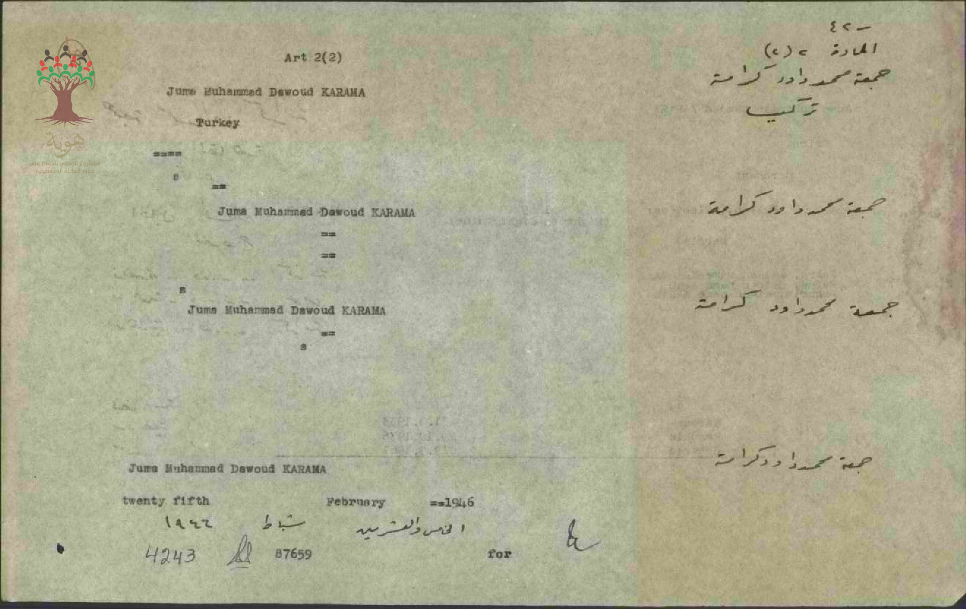 ورقة بيانات جمعة كرامة المرفقة بطلب الجنسية الفلسطينية