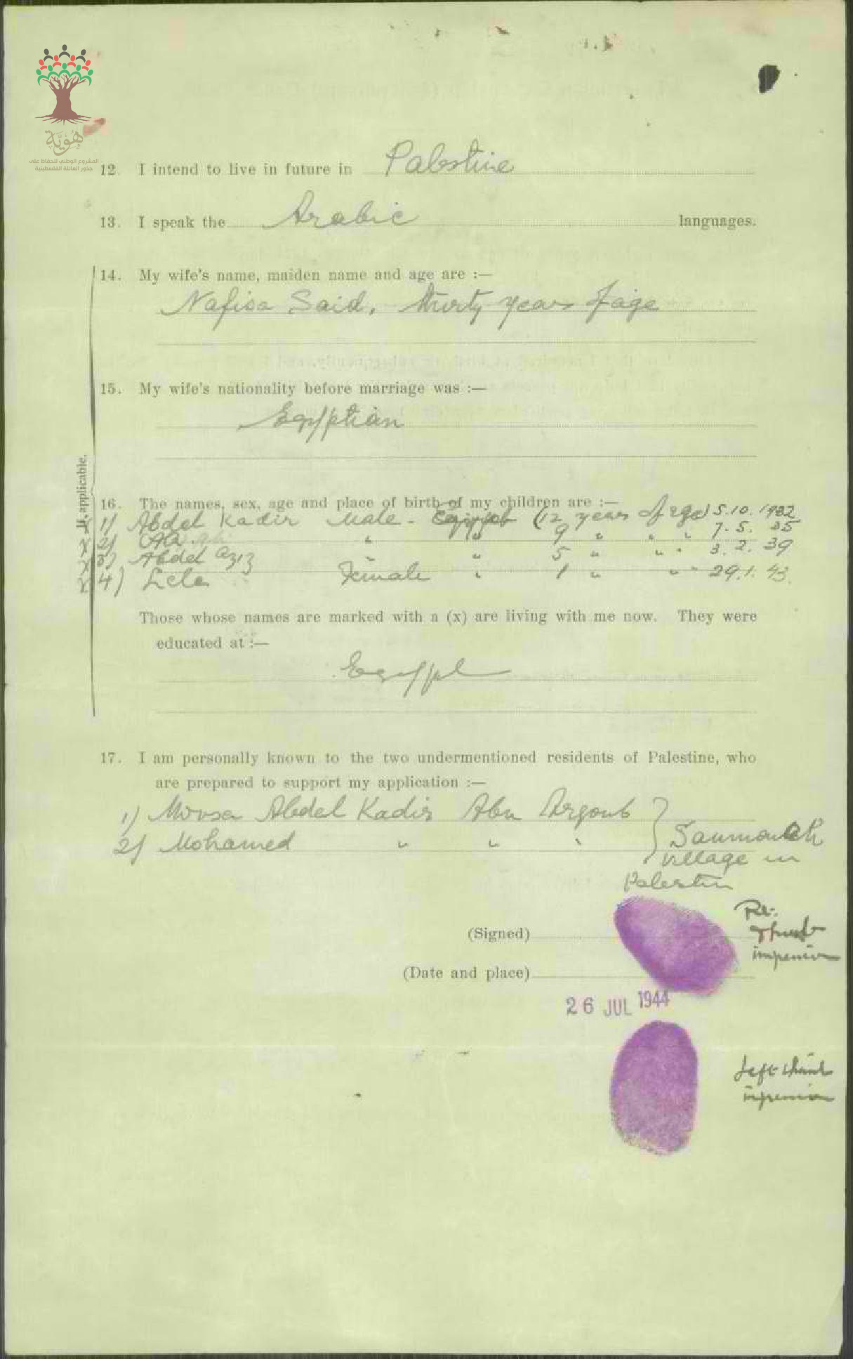 طلب الجنسية الفلسطينية - خليل أبو عرقوب - السموع