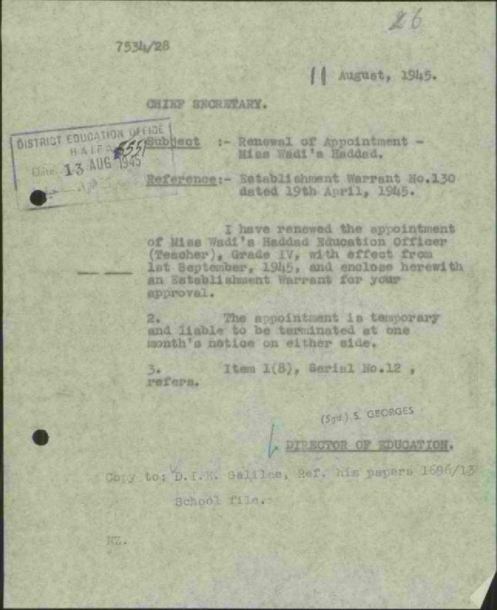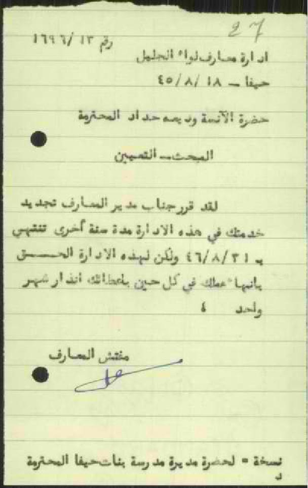 رسائل بخصوص تجديد خدمة المعلمة وديعة حداد