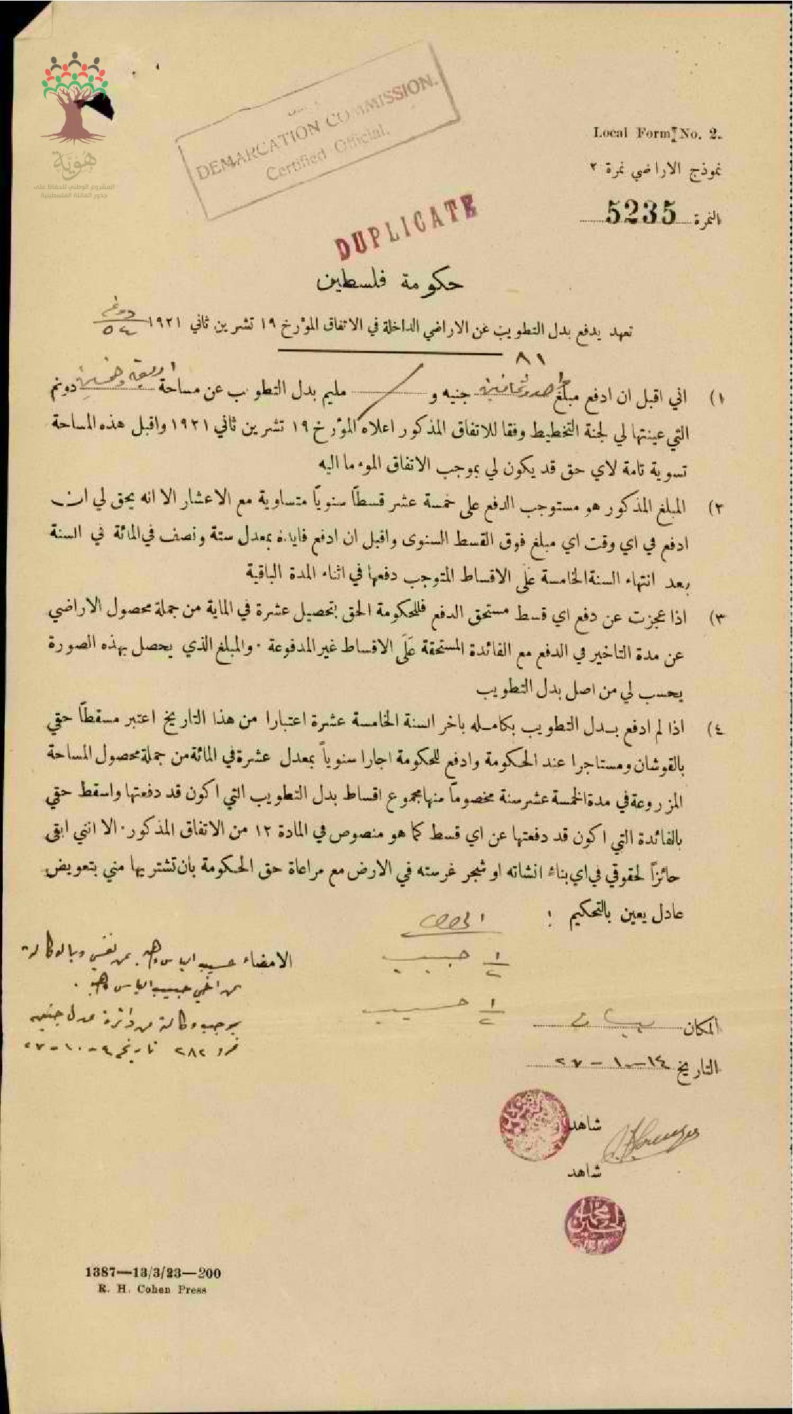 تعهد بدفع تطويب أرض أبناء الياس وهبة في بيسان