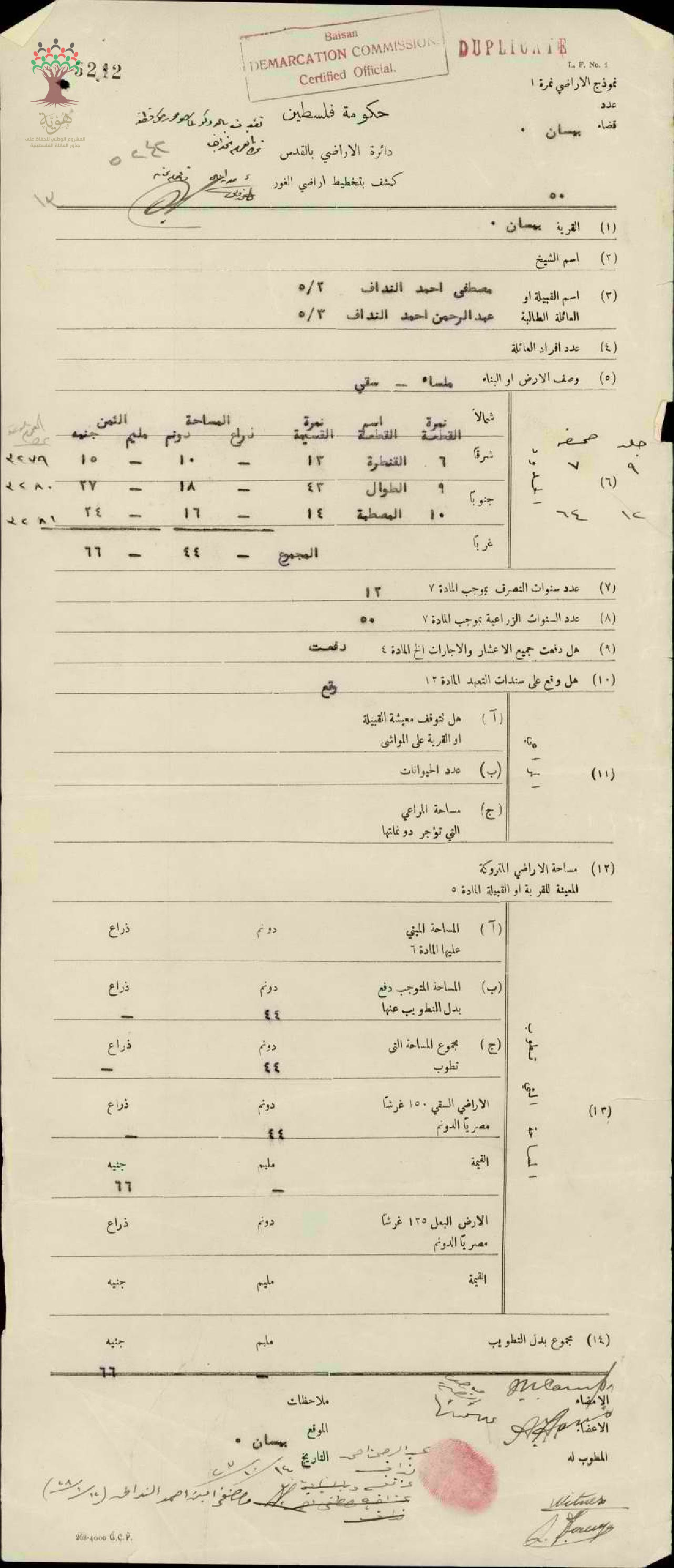 كشف تخطيط أرض أبناء أحمد النداف في بيسان