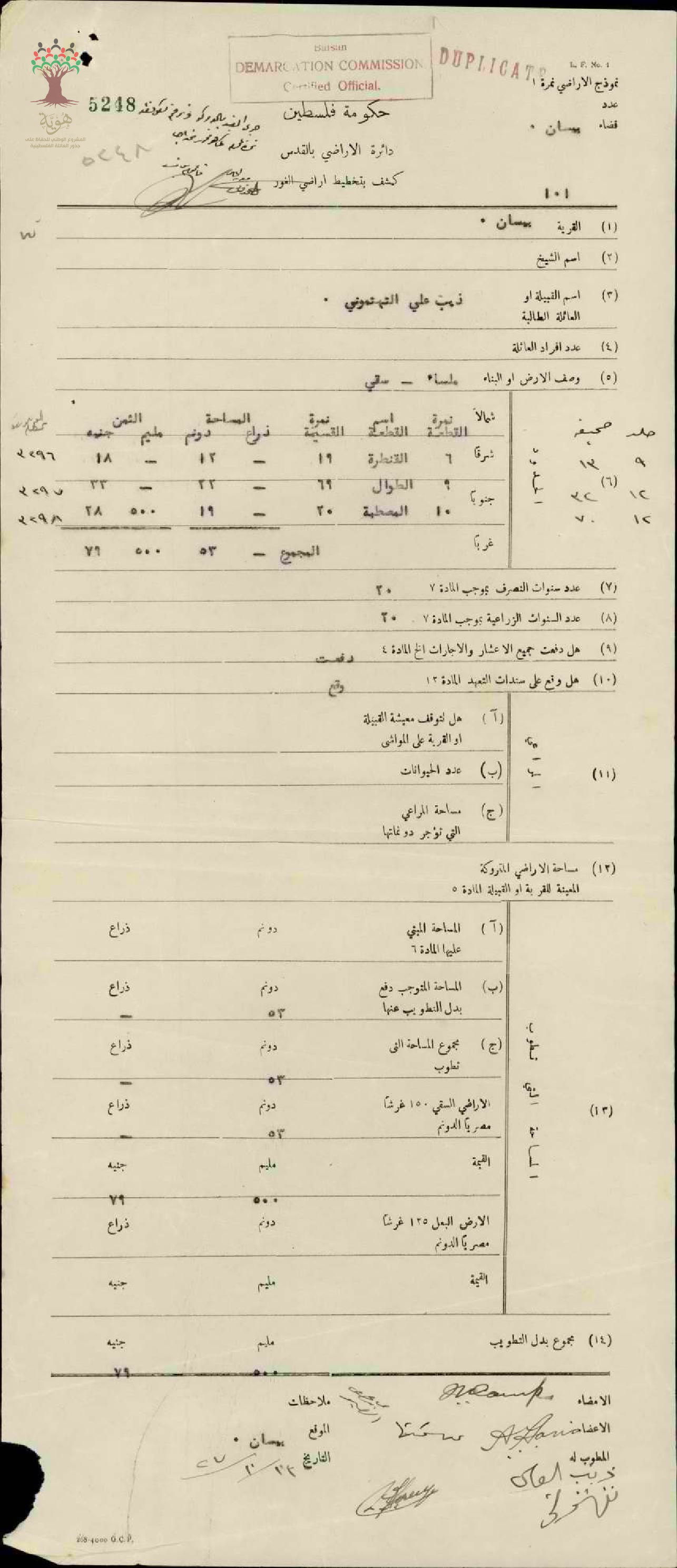 كشف تخطيط أرض ذيب علي التهتموني في بيسان