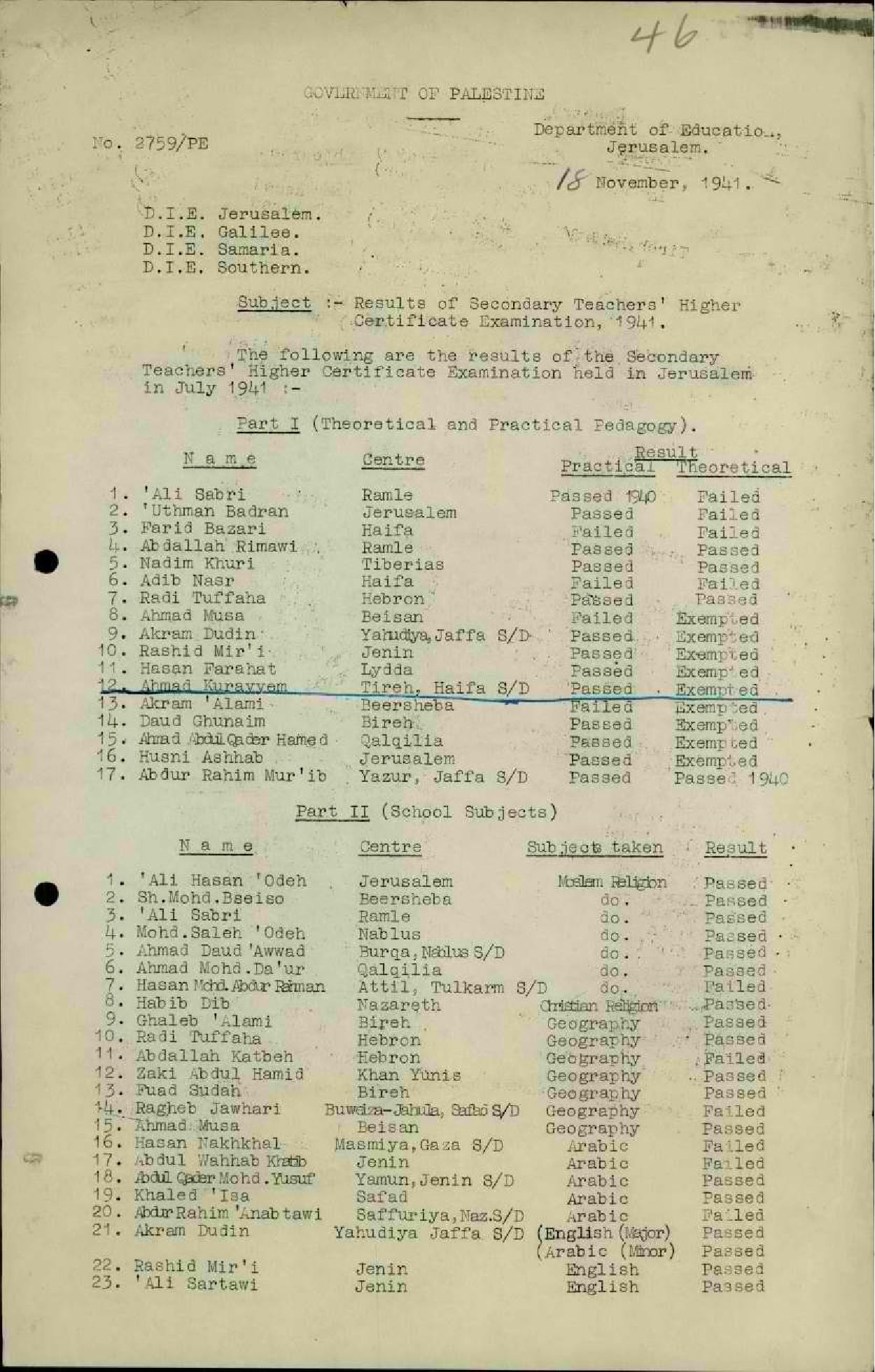 نتائج امتحانات المعلمين القسمين الأول والثاني واجتياز المعلم أحمد كريّم للجزئين