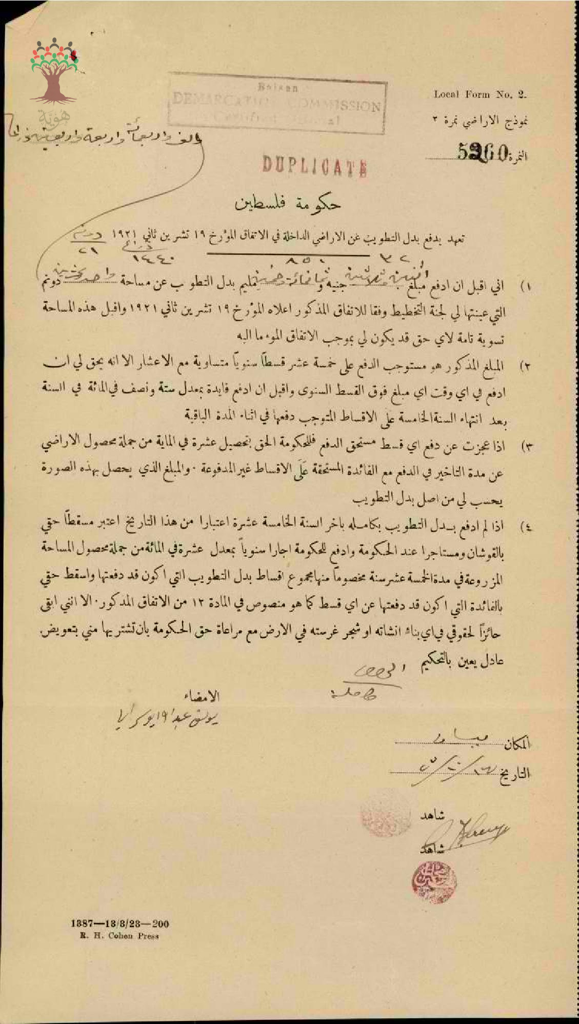 تعهد بدفع تطويب أرض يوسف عبد الله أبو سرايا في بيسان