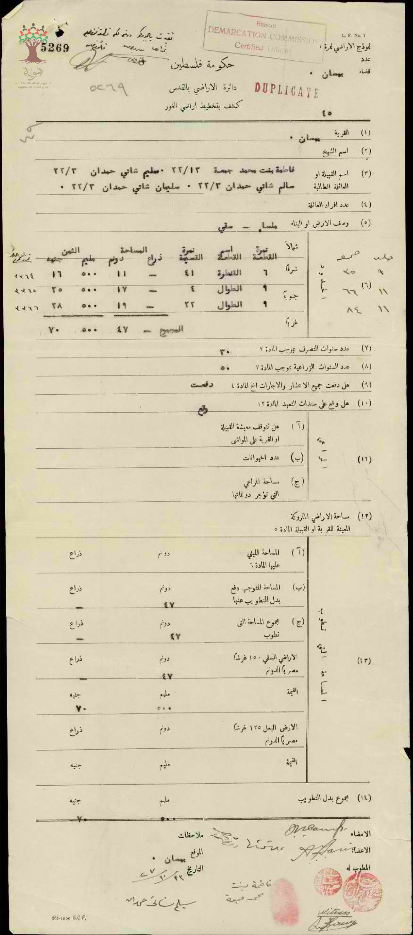 كشف تخطيط أرض أبناء شاتي حمدان في بيسان