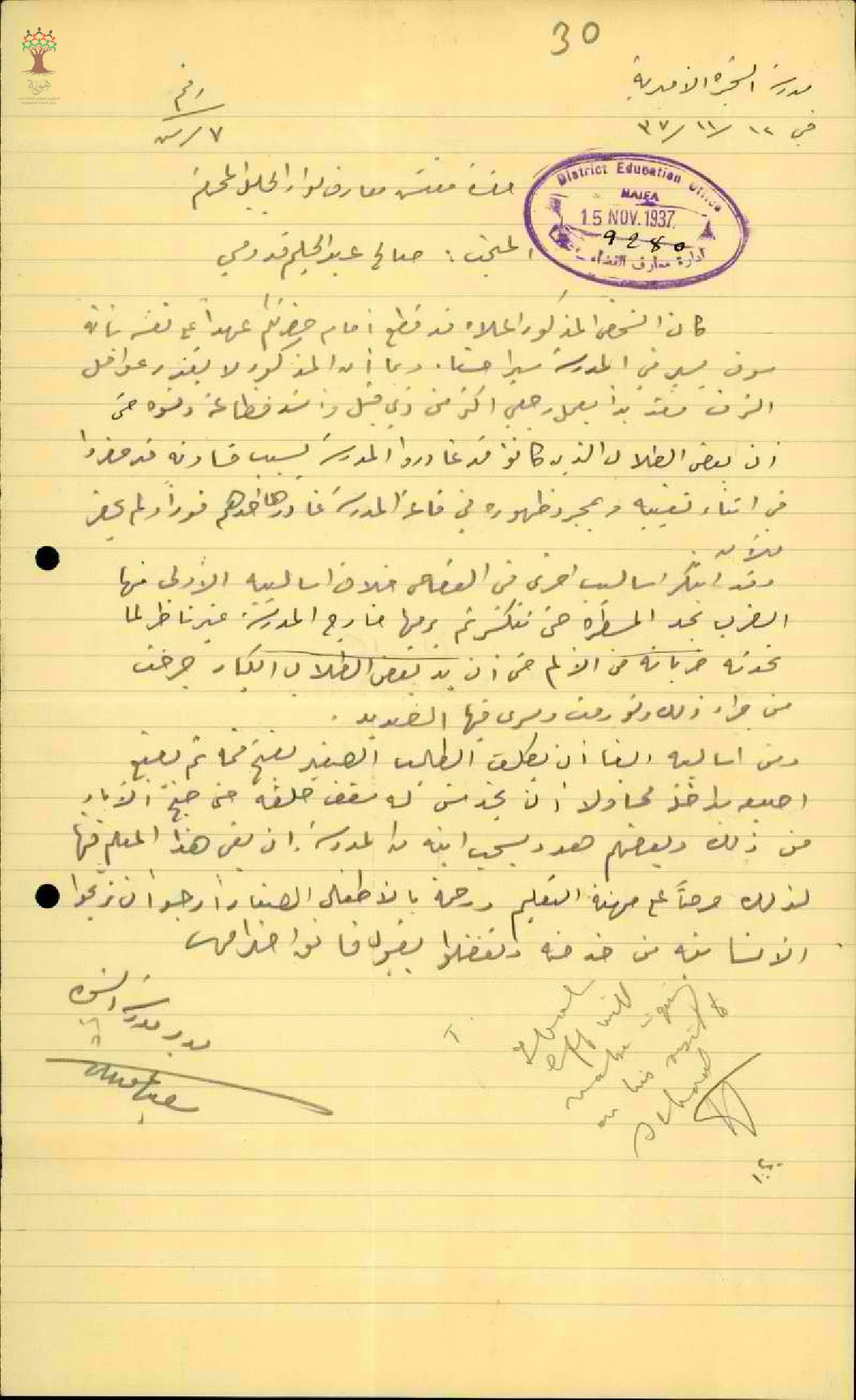 رأي مدير مدرسة الشجرة بالمعلم صالح عبد الحليم القدومي - كفر قدوم