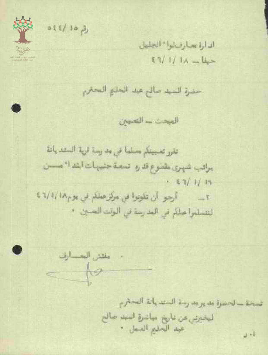 تعيين المعلم صالح ابو الهيجا في مدرسة السنديانة