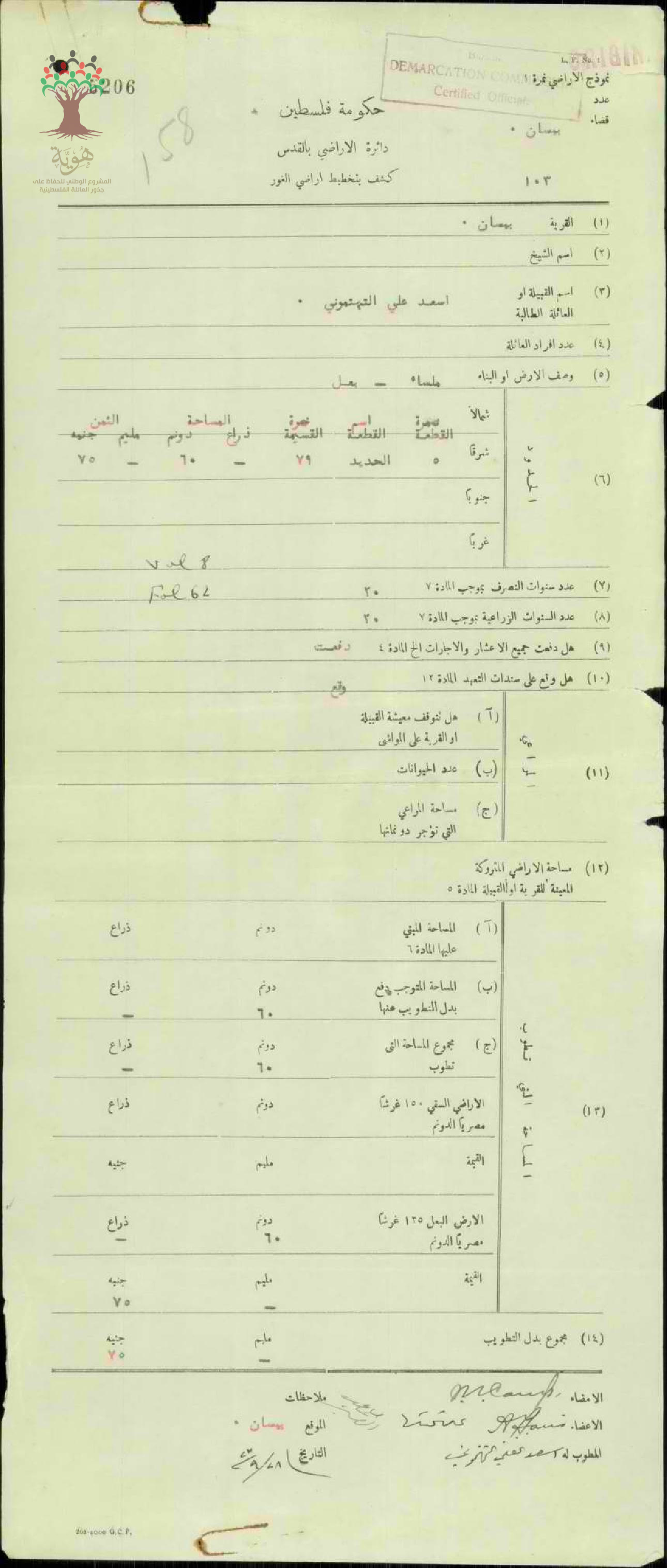 كشف تخطيط أرض أسعد علي التهتموني في بيسان
