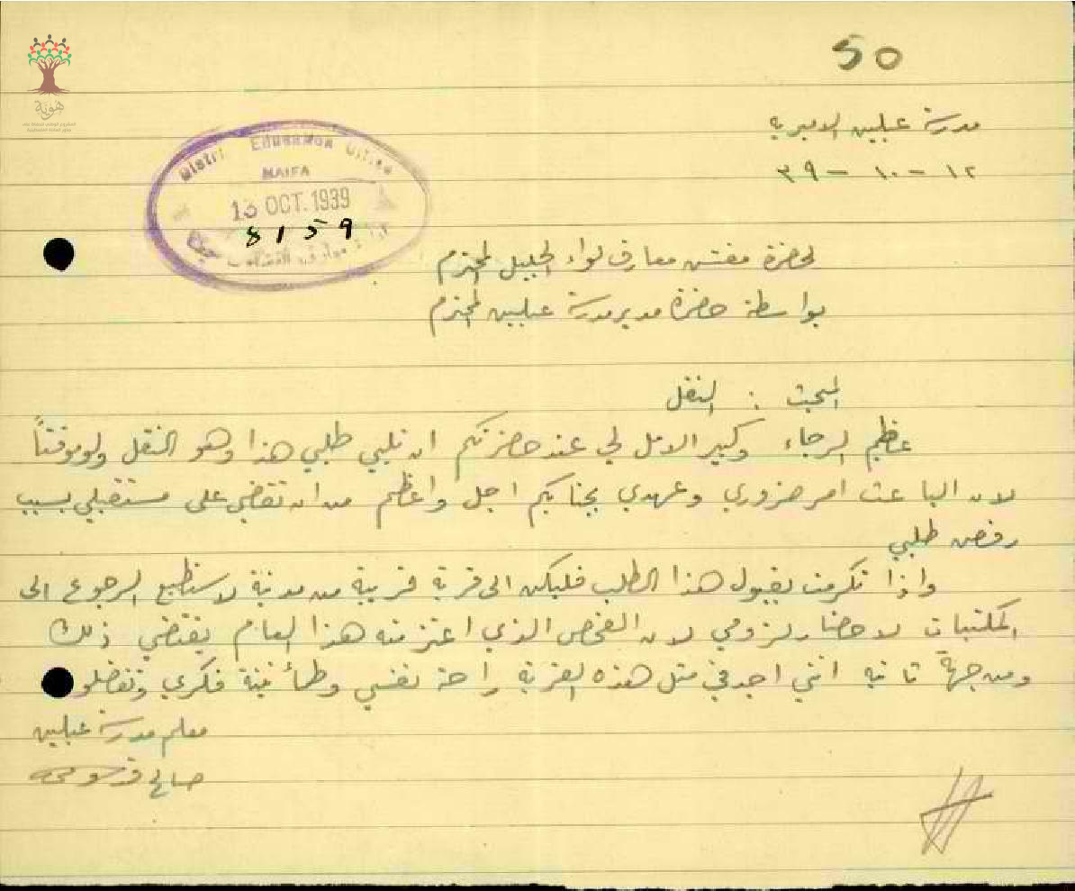 طلب نقل مقدم من المعلم صالح عبد الحليم القدومي - كفر قدوم