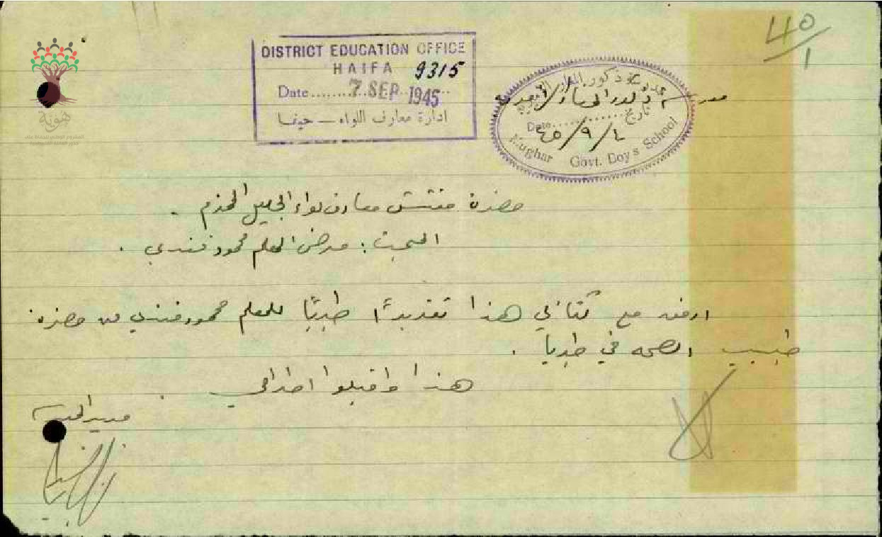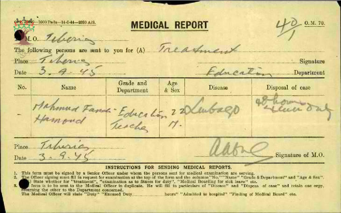 تقرير طبي مقدم من المعلم محمود فندي حمود - الخالصة - مدرسة المغار